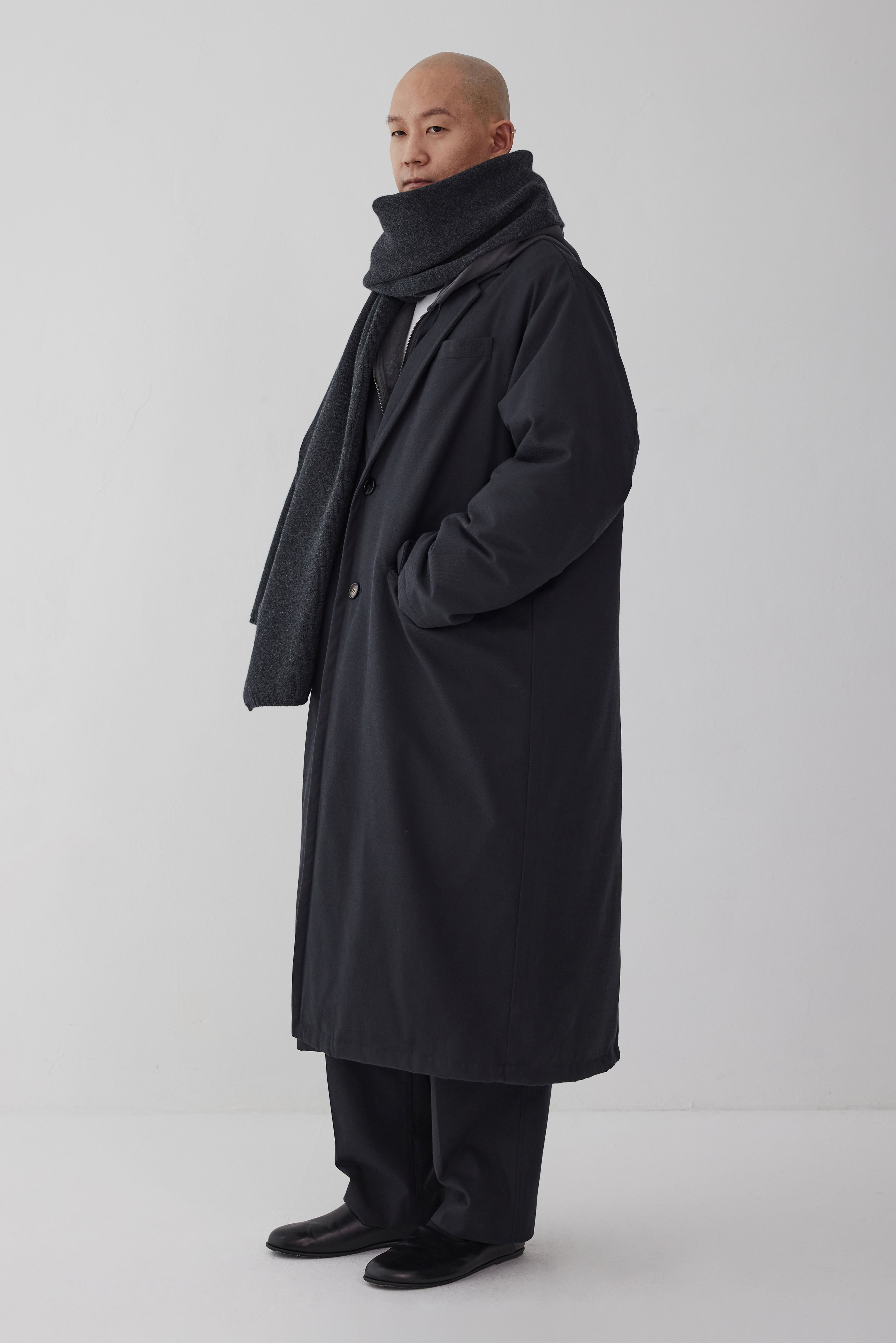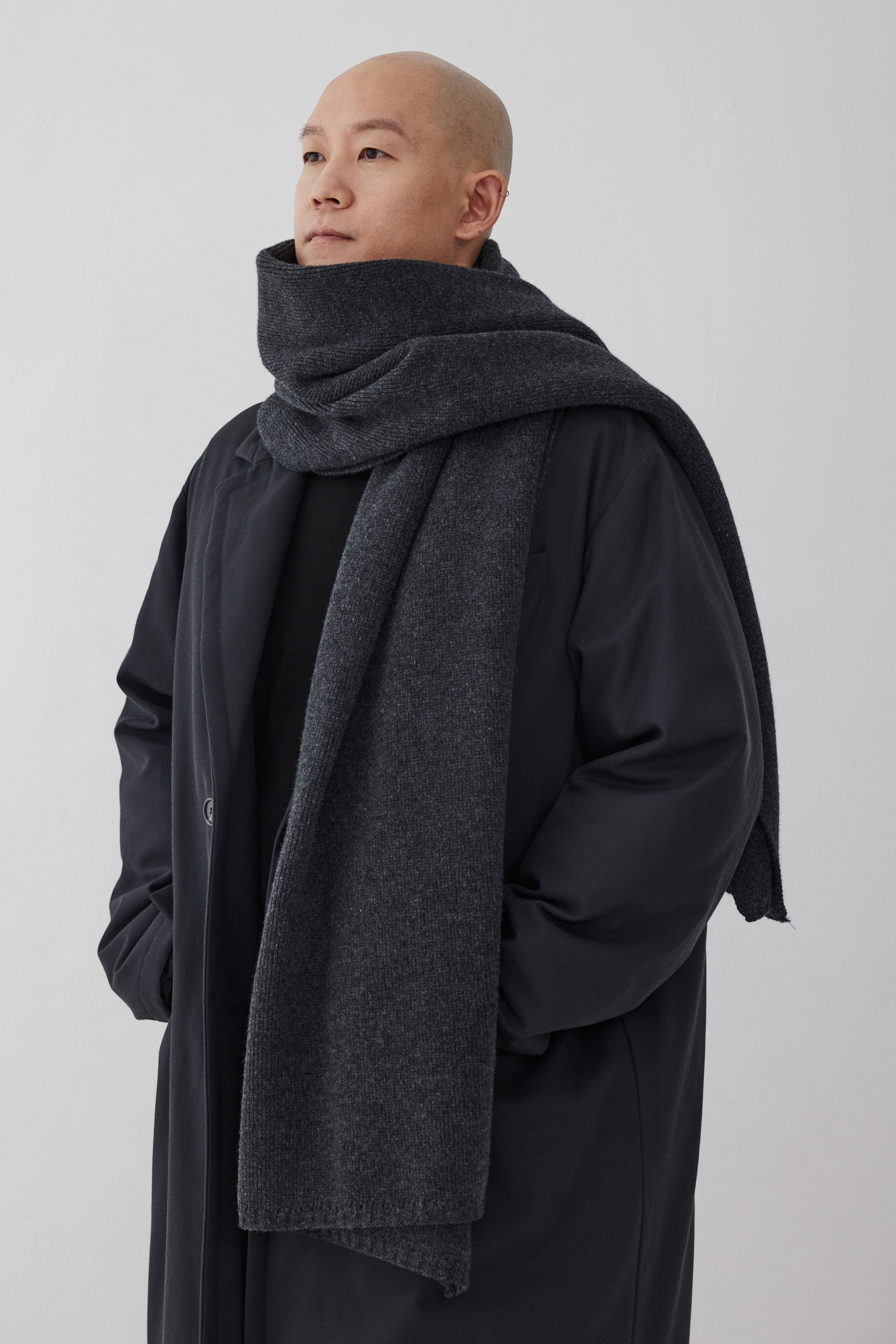 A chunky muffler that creates a mood. It goes with anything and completes the look.