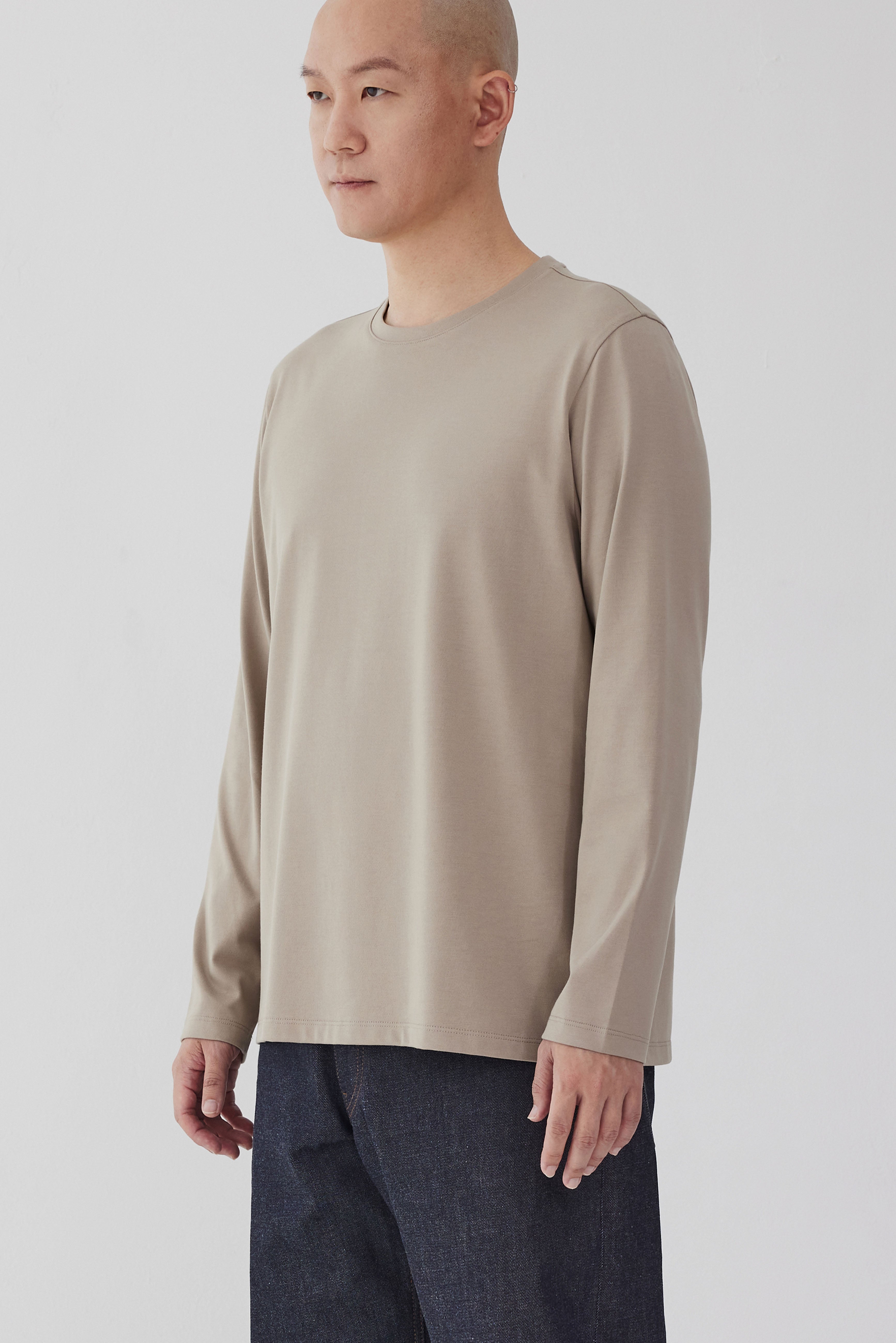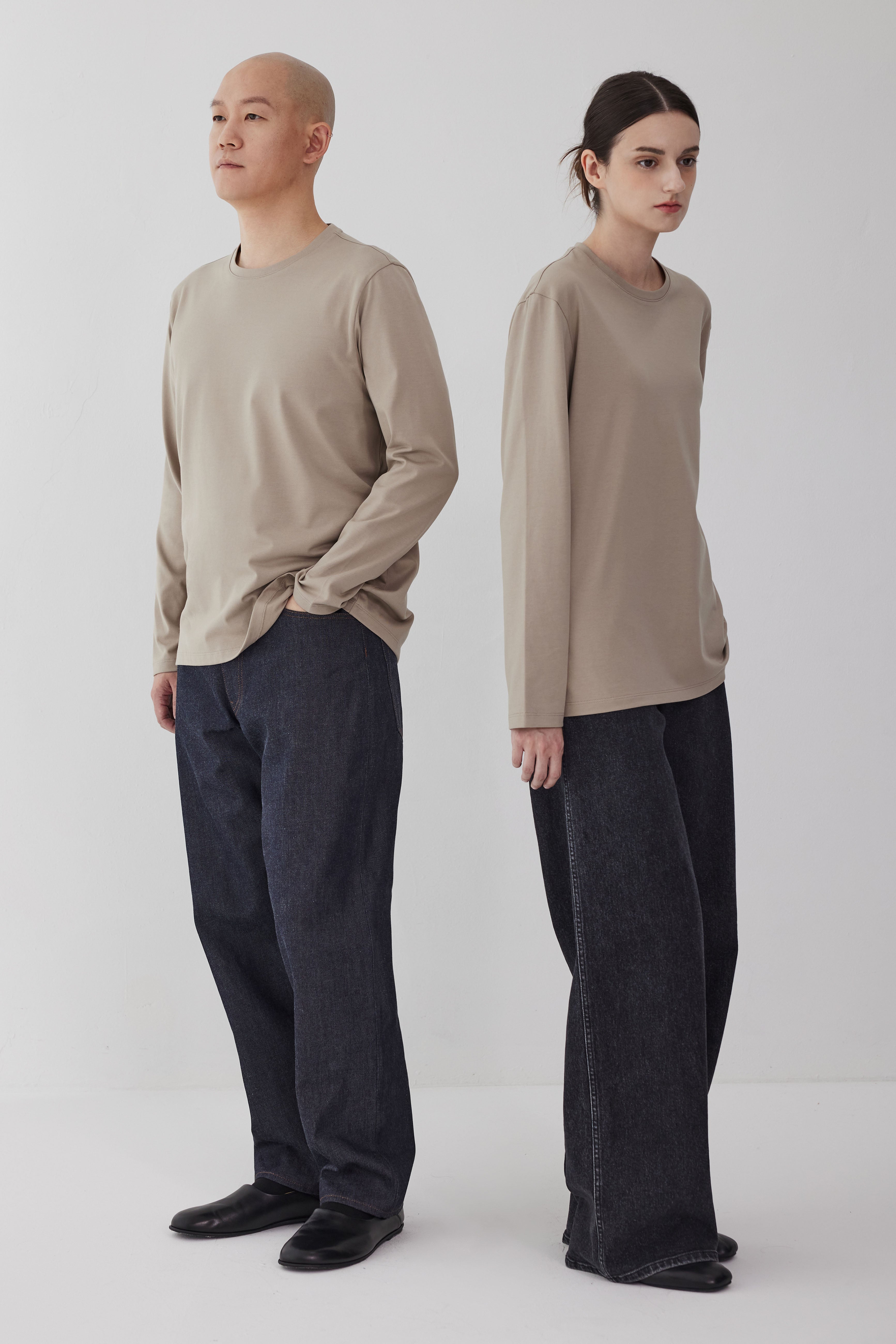 This perfectly made box fit t-shirt is made with American Sea Island cotton. Sea Island cotton is currently the highest grade of cotton yarn and is a precious material that accounts for less than 1% of global production. The surface of the fabric is woven in a rib style to add volume and three-dimensionality.