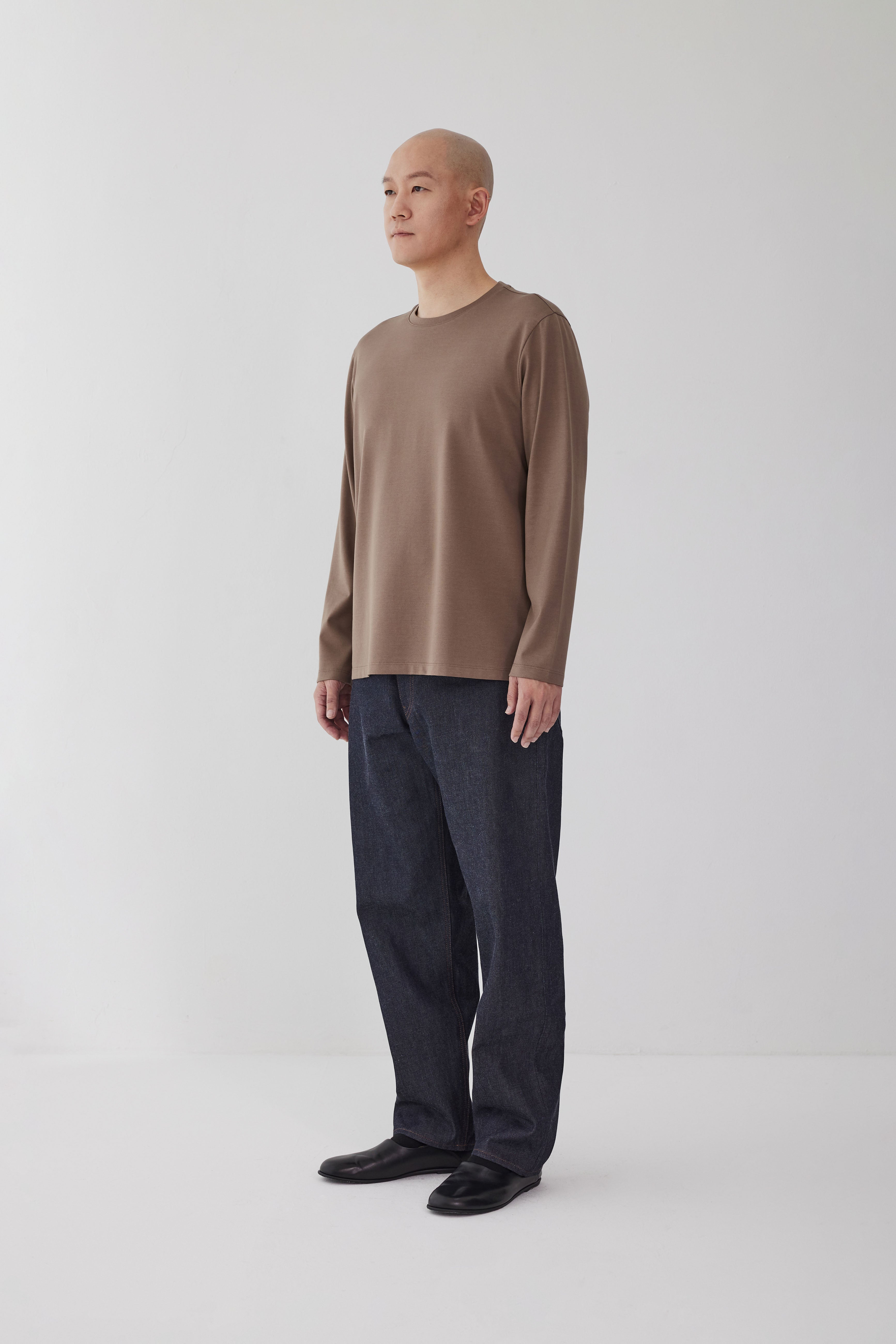 This perfectly made box fit t-shirt is made with American Sea Island cotton. Sea Island cotton is currently the highest grade of cotton yarn and is a precious material that accounts for less than 1% of global production. The surface of the fabric is woven in a rib style to add volume and three-dimensionality.