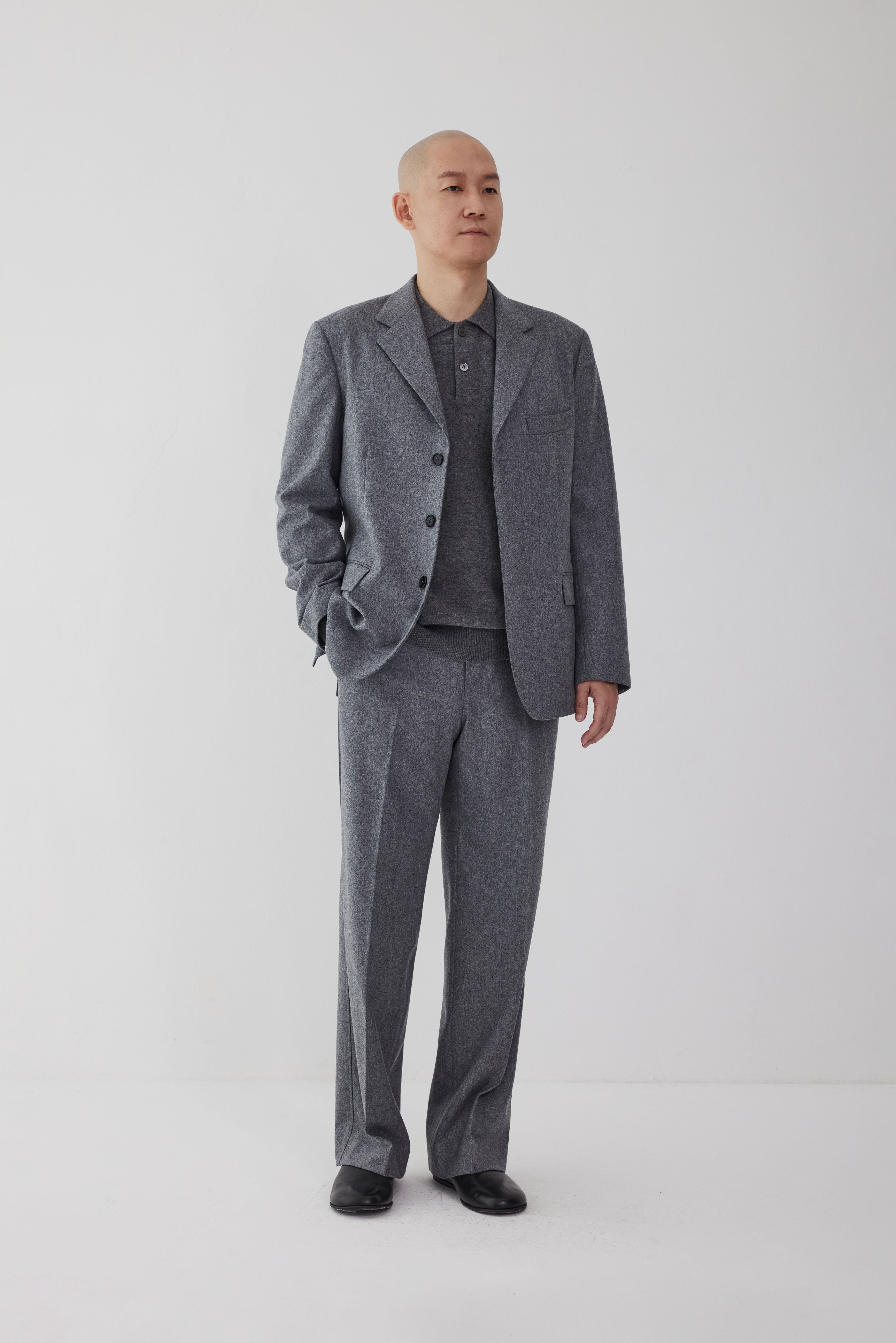 These are wide pants with a subtle brush cut silhouette that contains the aesthetics of Lerici. The silhouette that becomes slightly wider towards the bottom gives a modern and restrained three-dimensional feel. They match well with AP 90, AP 91 knits and AP 250 regular jacket wool flannel. The soft flannel wool fabric gives a soft touch and atmosphere in winter.