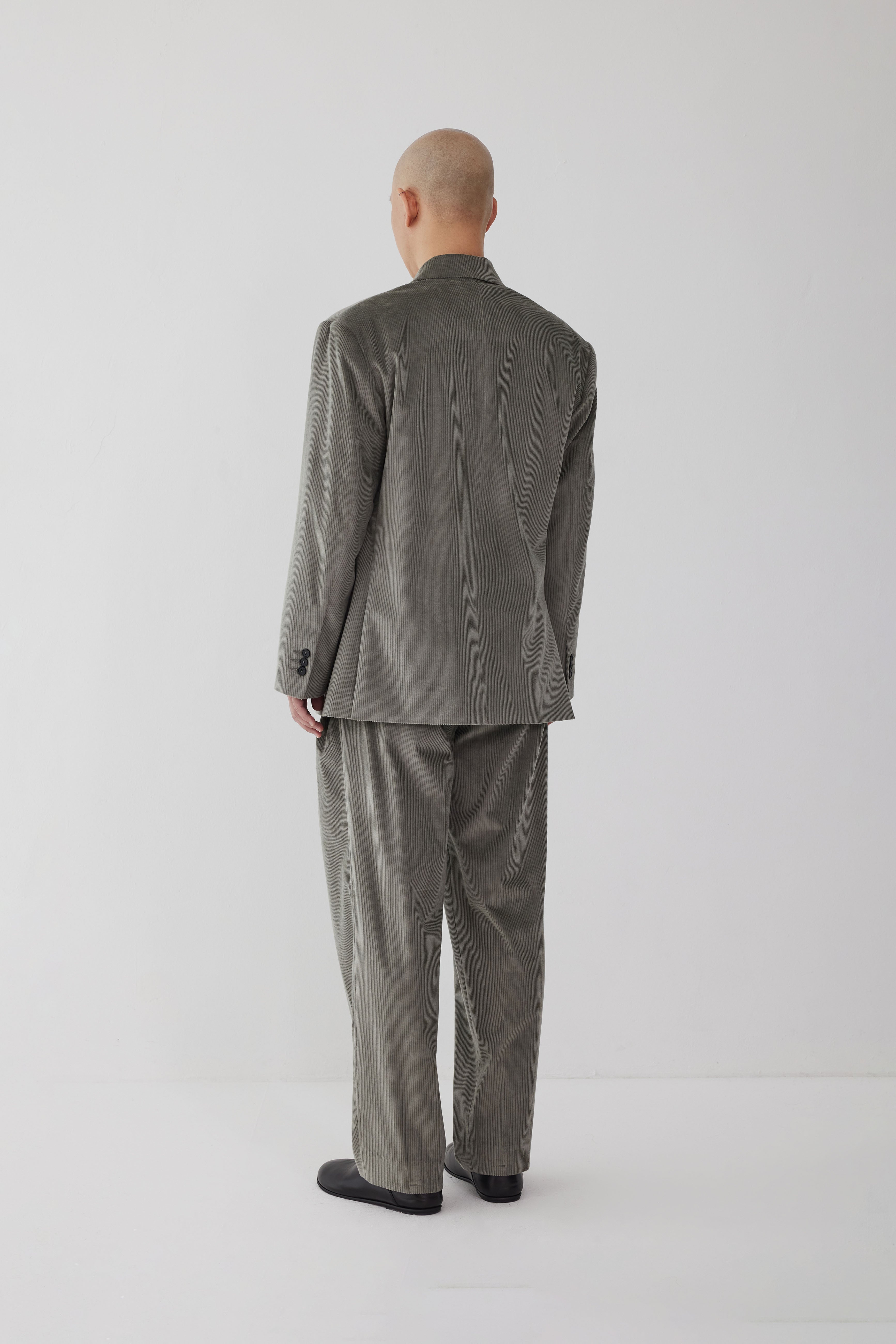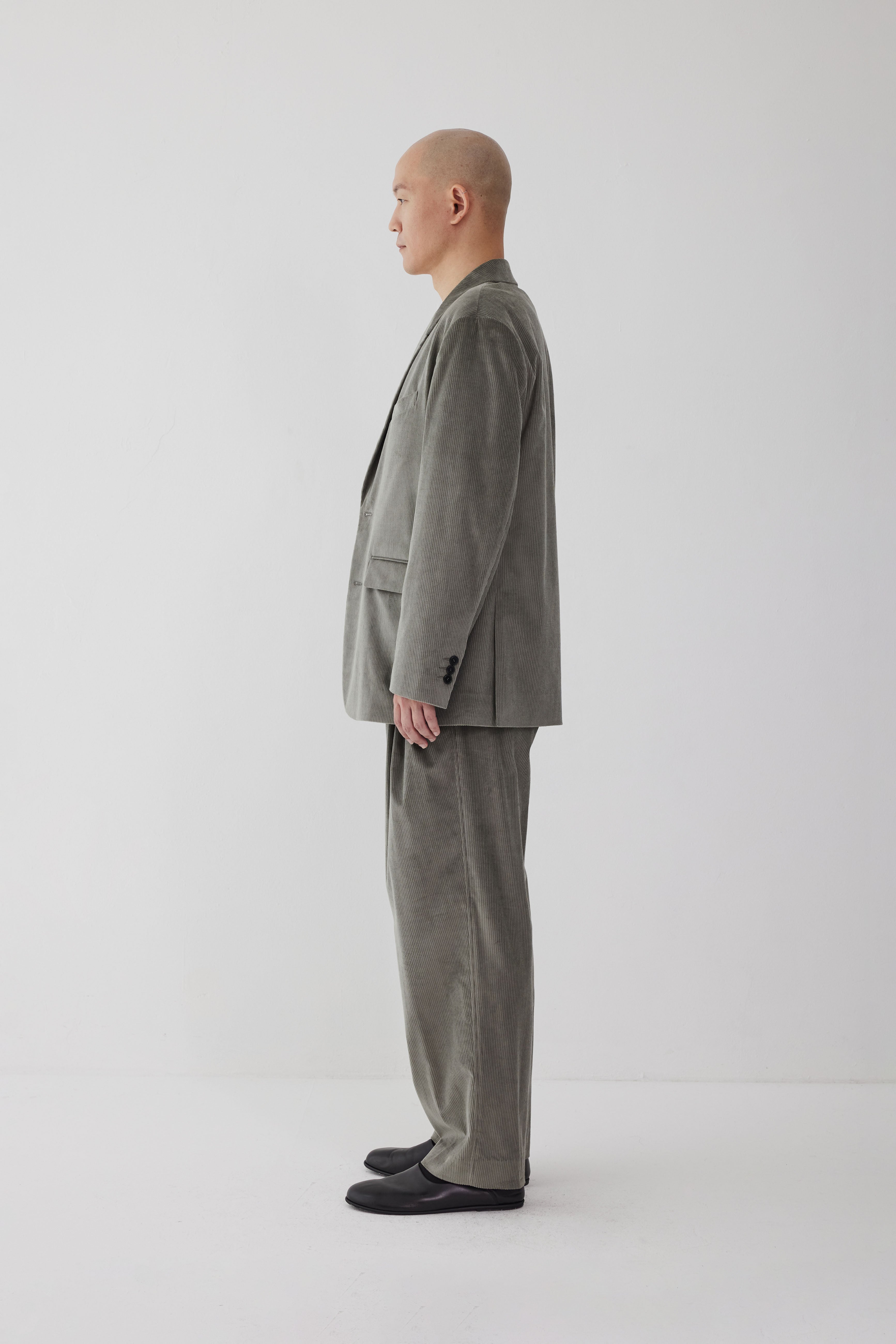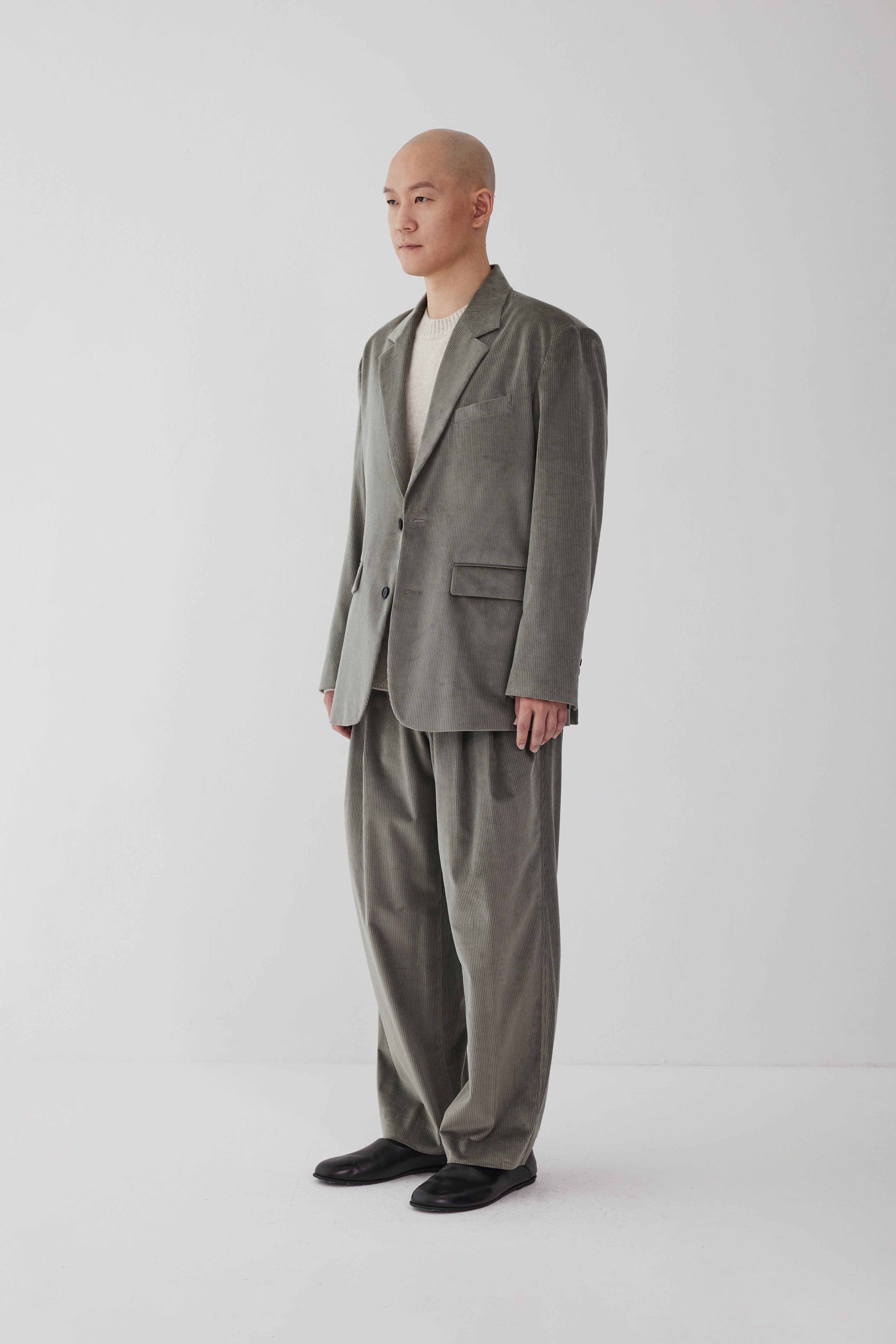 These wide pants show a sophisticated sense of balance with the 3-pleats applied. They provide a very comfortable fit with a casual feel. The highest quality cotton cashmere fabric, whose quality can be confirmed with the skin and eyes, was used. The perfect combination of cotton and cashmere provides a soft touch and deep color. Matches with the AP 251 Relaxed Jacket Corduroy. The corduroy set-up for a special occasion creates a restrained yet formal atmosphere.