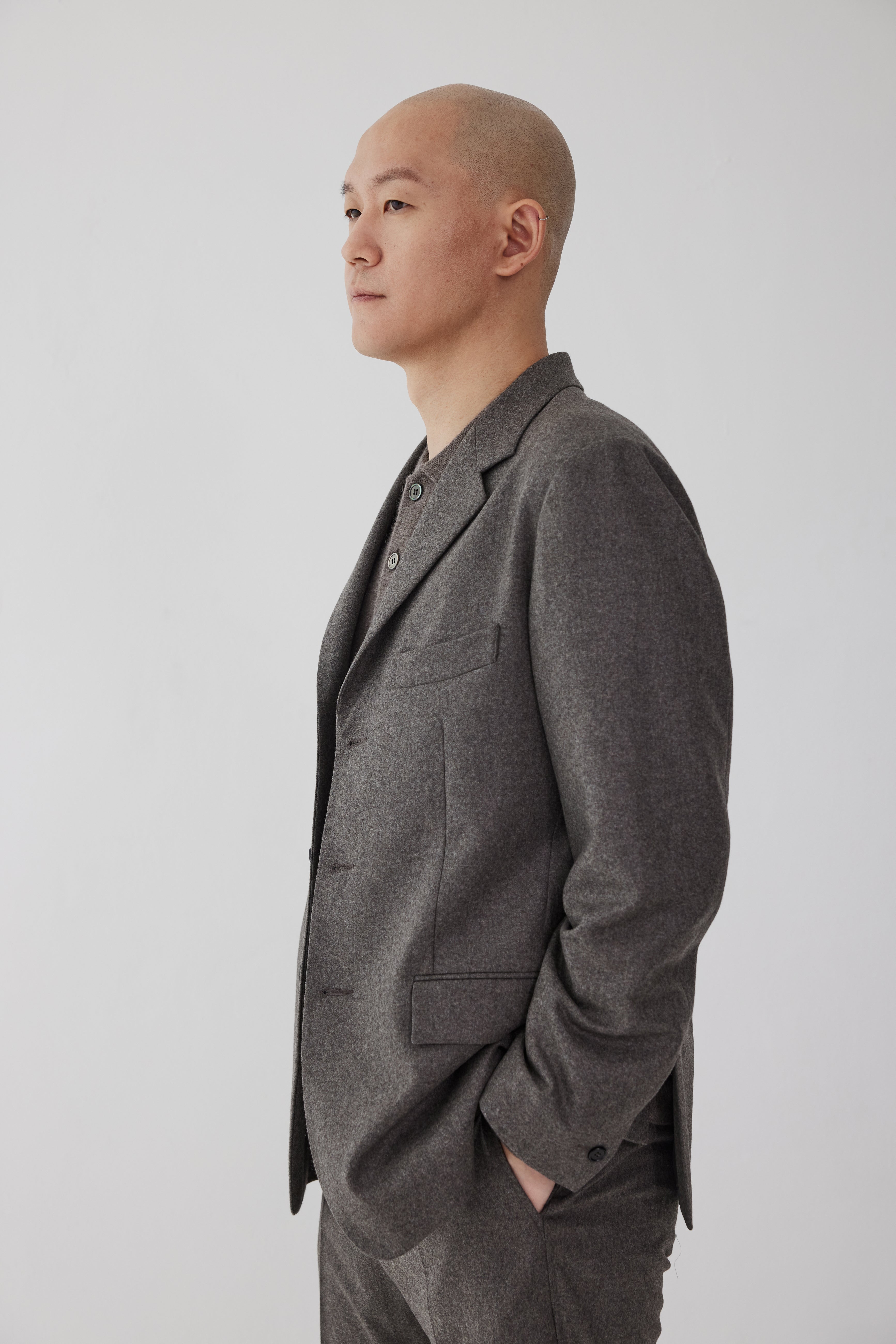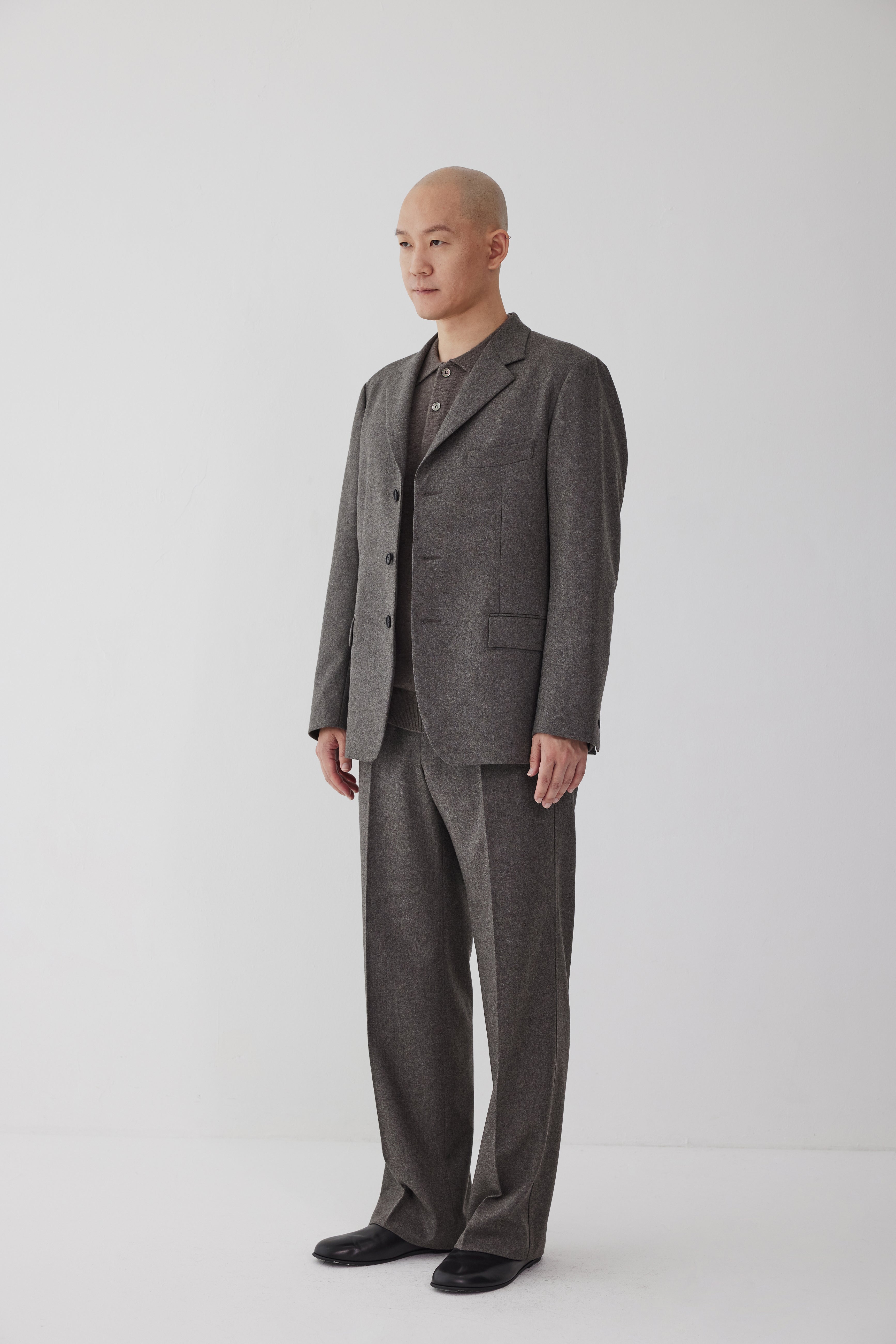 This is a signature regular jacket with a stable silhouette that is the culmination of LERICI's tailoring know-how. The textured flannel material expresses both natural casualness and formality. You can wear it with the AP 116 wool flannel pants.