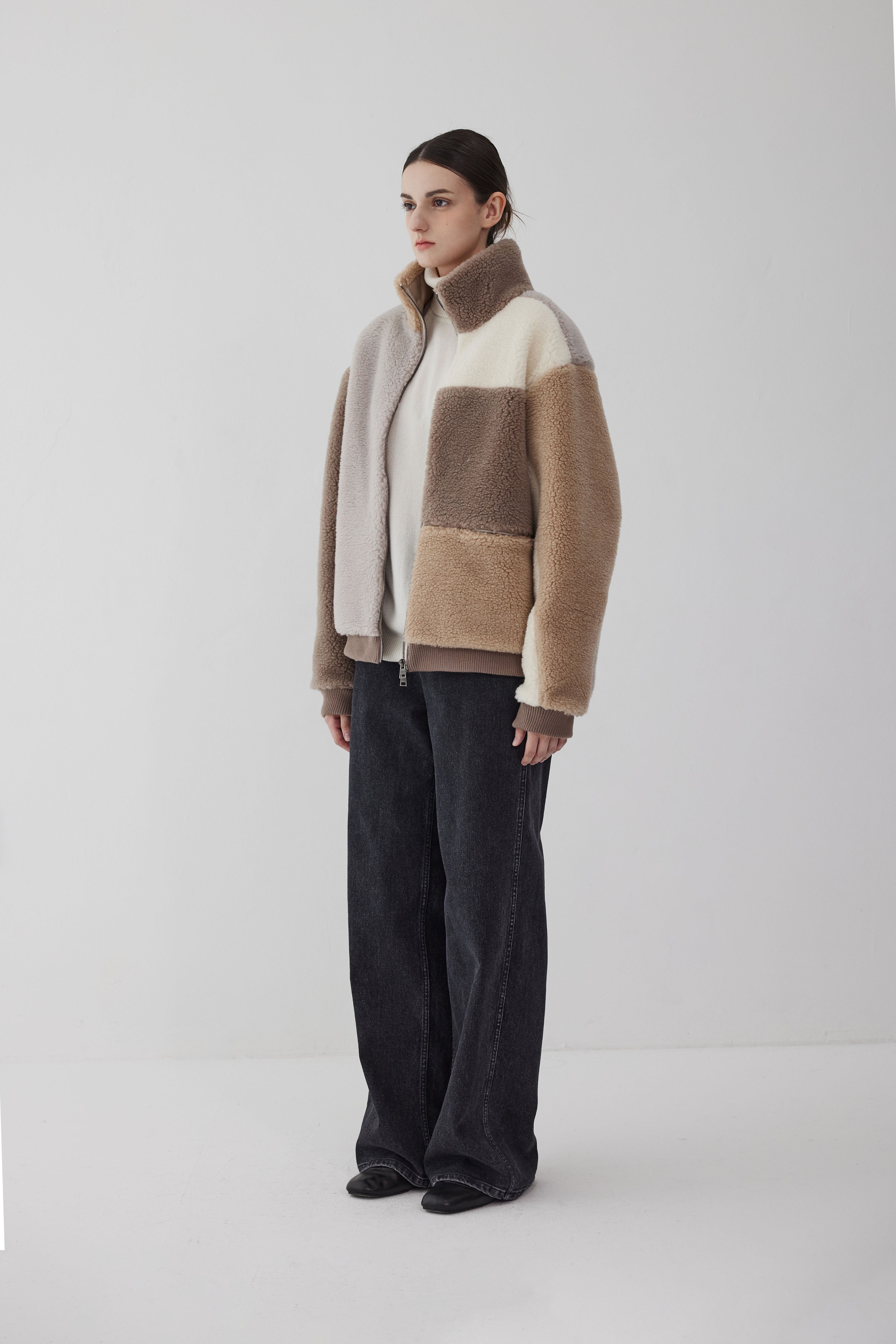 This is a high-neck sherpa jacket that offers a very light fit. The neck collar of the jacket expresses the modern and unique atmosphere of Lerici. It has excellent heat retention and breathability and is easy to care for. A casual piece that can be worn comfortably in everyday life, with a new color scheme, unique asymmetrical pockets and Lerici's original two-way zipper.