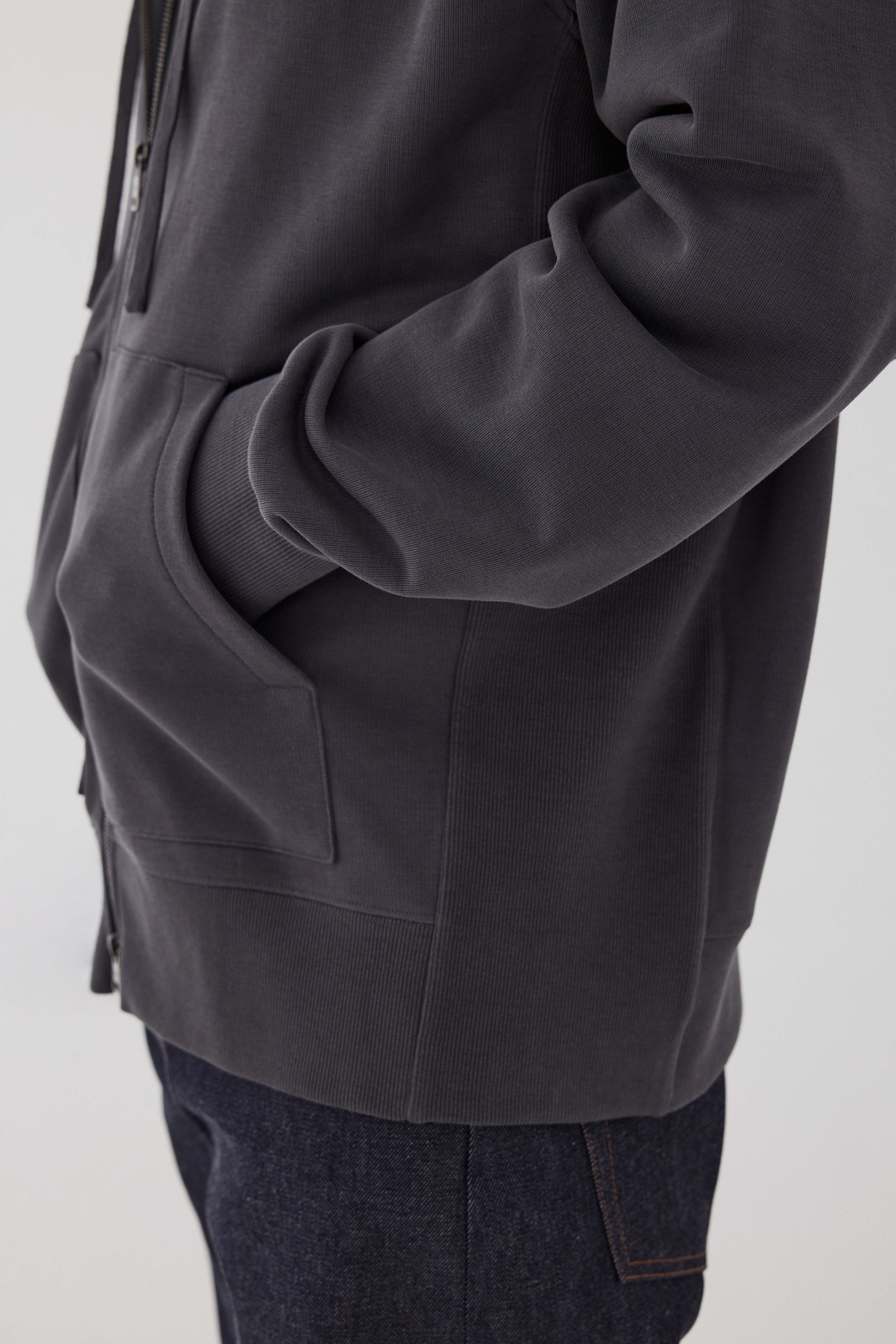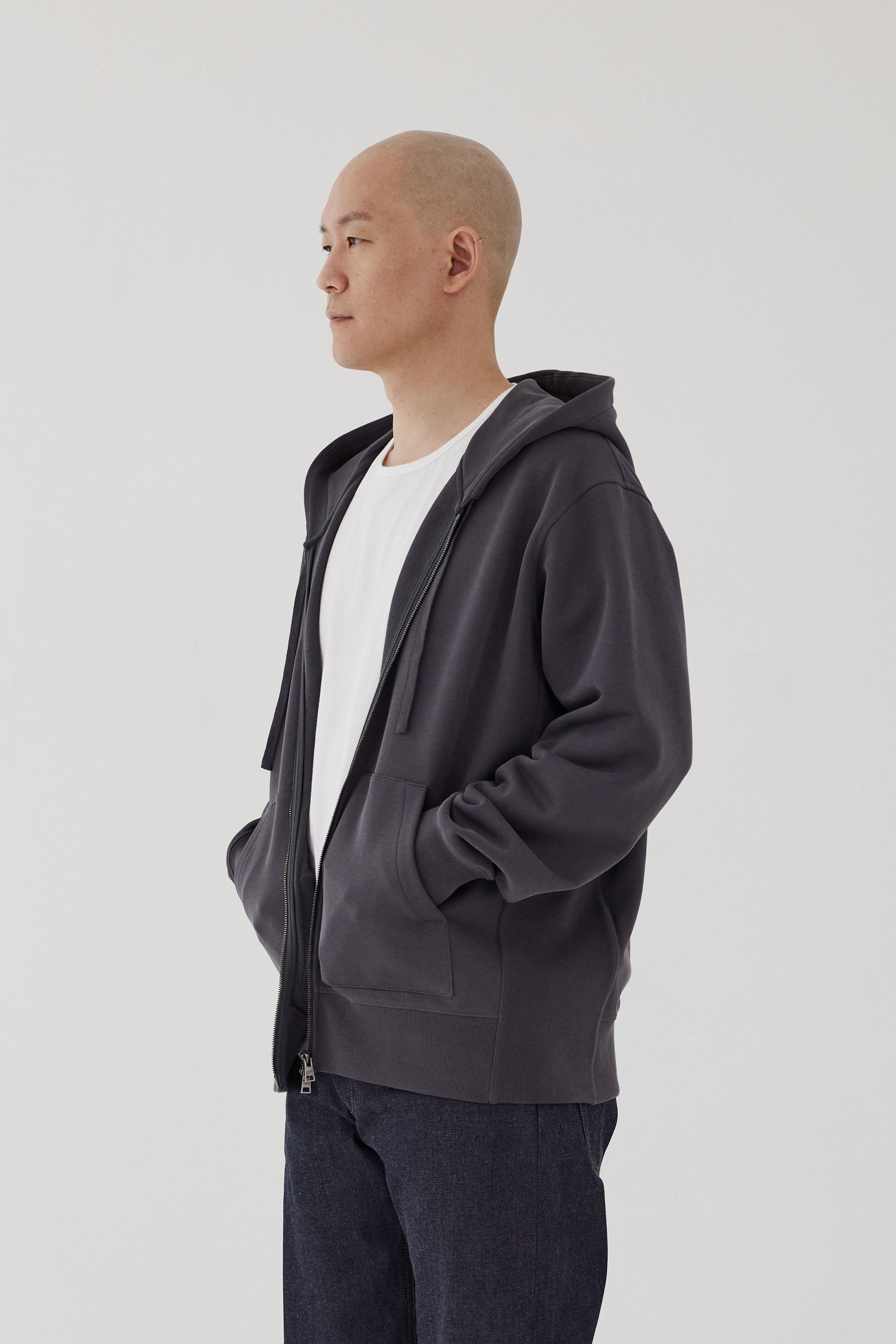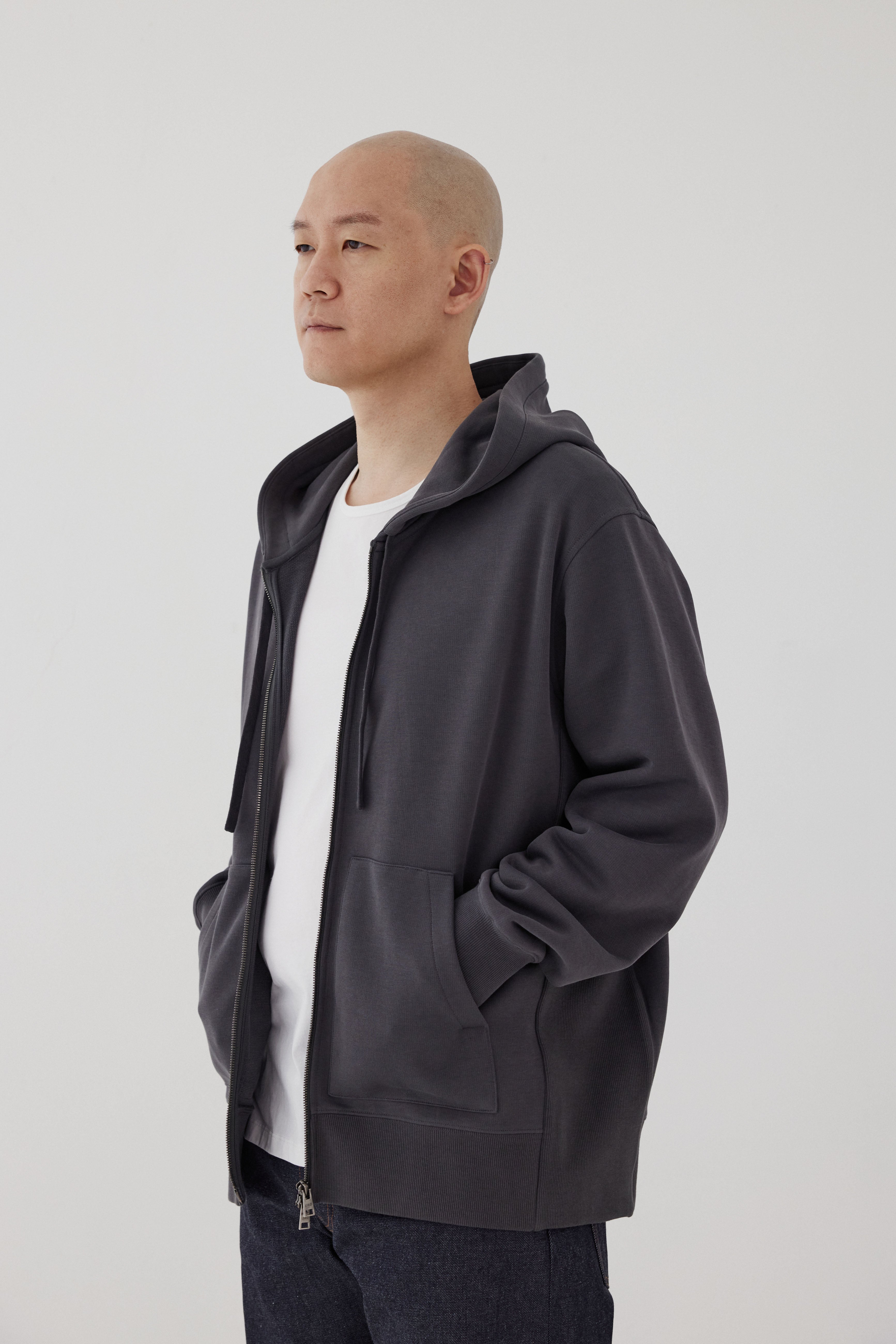 A casual essential with delicate and sophisticated details applied to every part. Made with a high-count 80-count, you can feel the depth and soft touch of the fabric surface. The hood part, made with double layers of the same fabric, shows a neat finish connection.