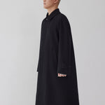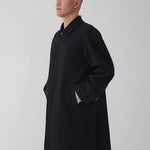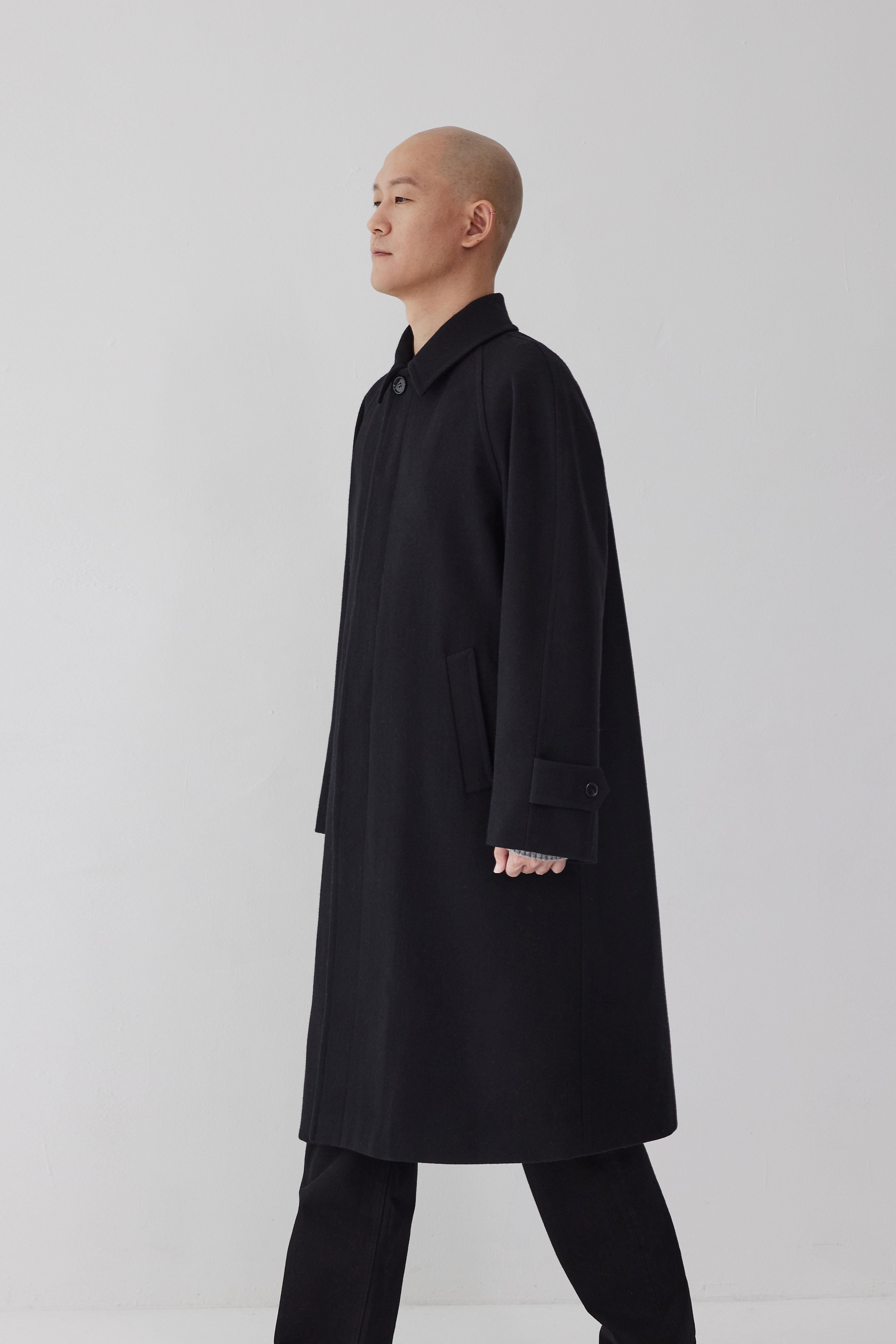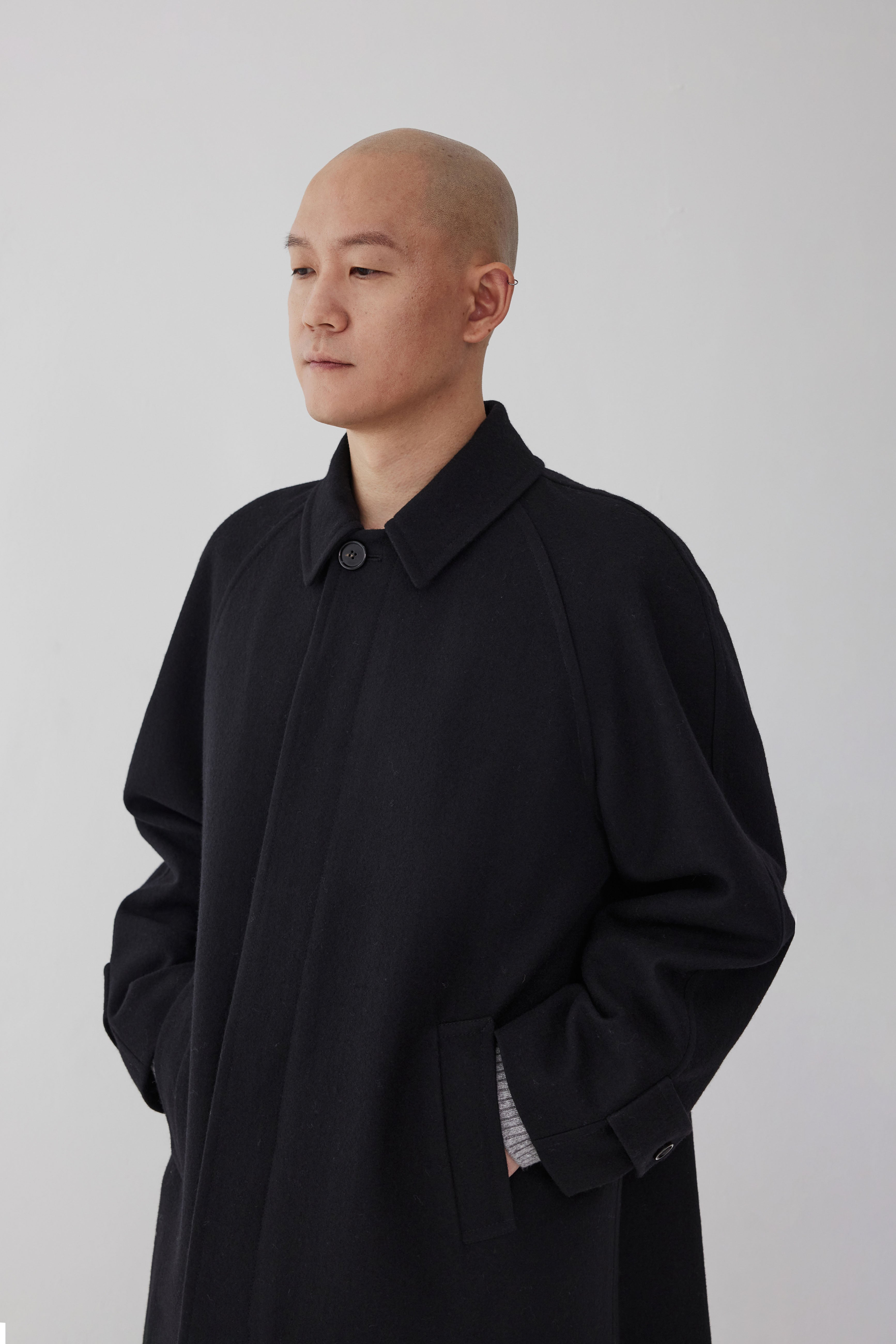 This is an original pattern raglan coat that is the culmination of LERICI's tailoring know-how. The softly falling sleeve line and generous chest circumference provide a comfortable and natural silhouette. The carefully selected fabric is made of mountain goat wool from the Austrian mountains, and the local traditional dyeing technique expresses a unique texture and deep color.