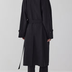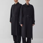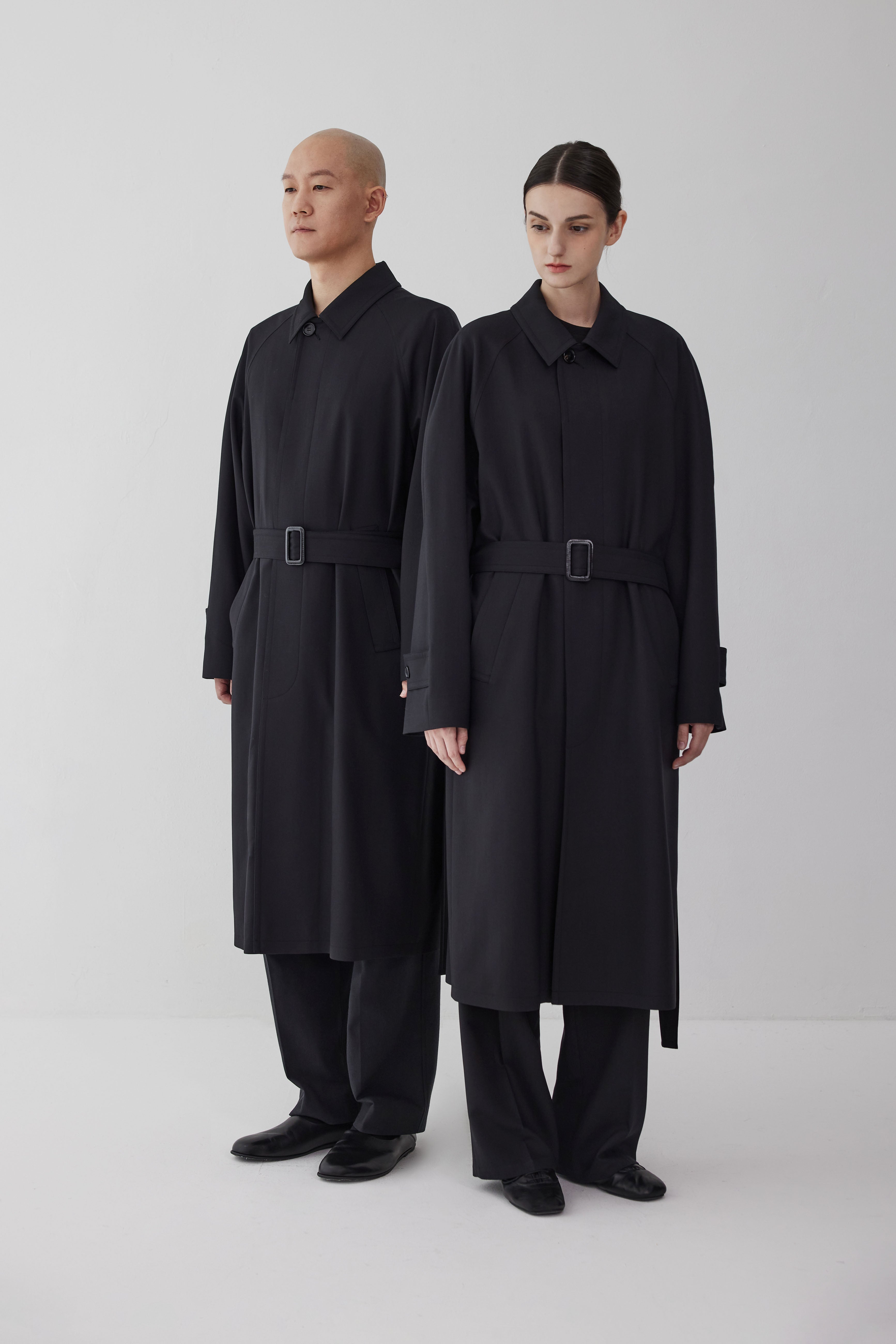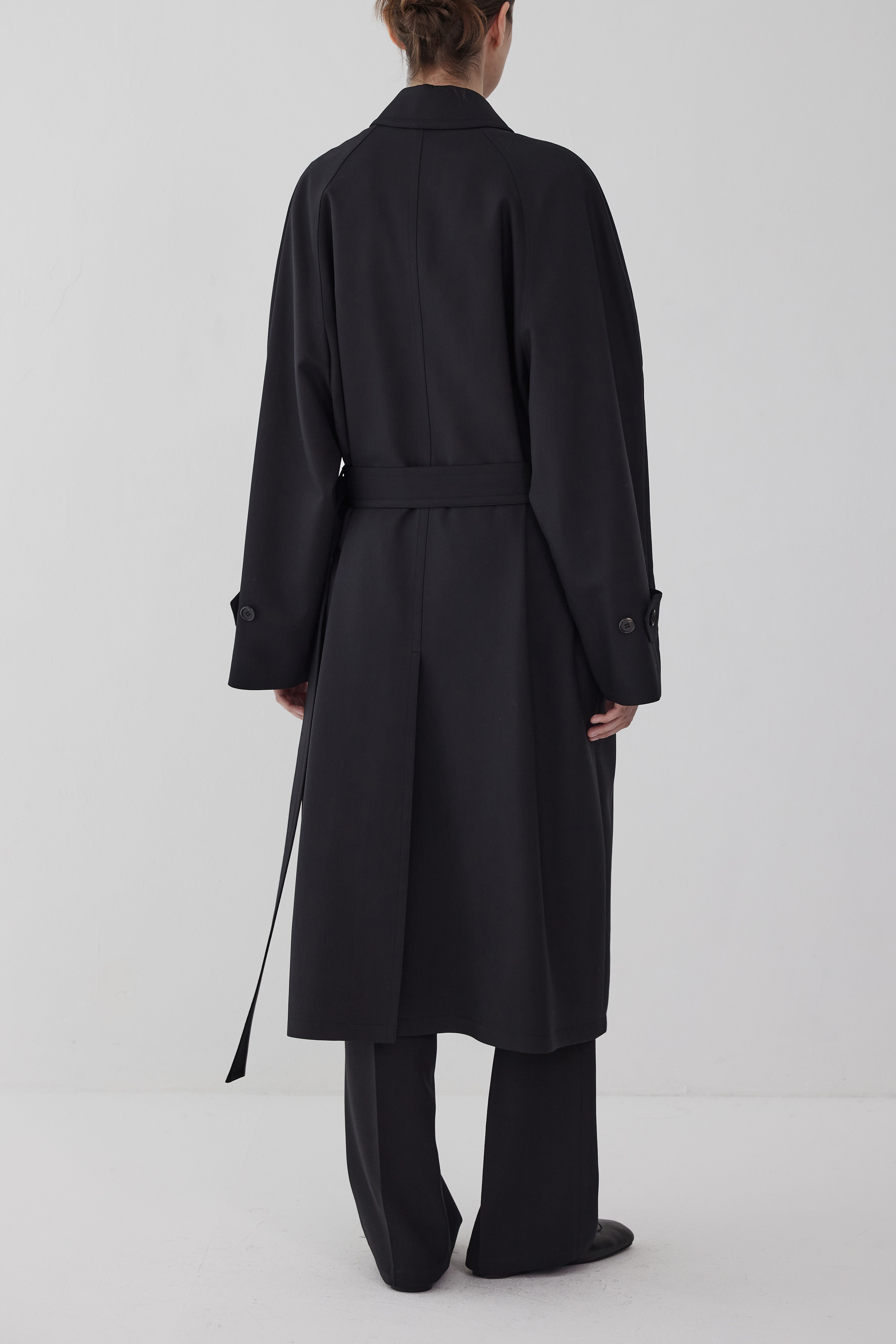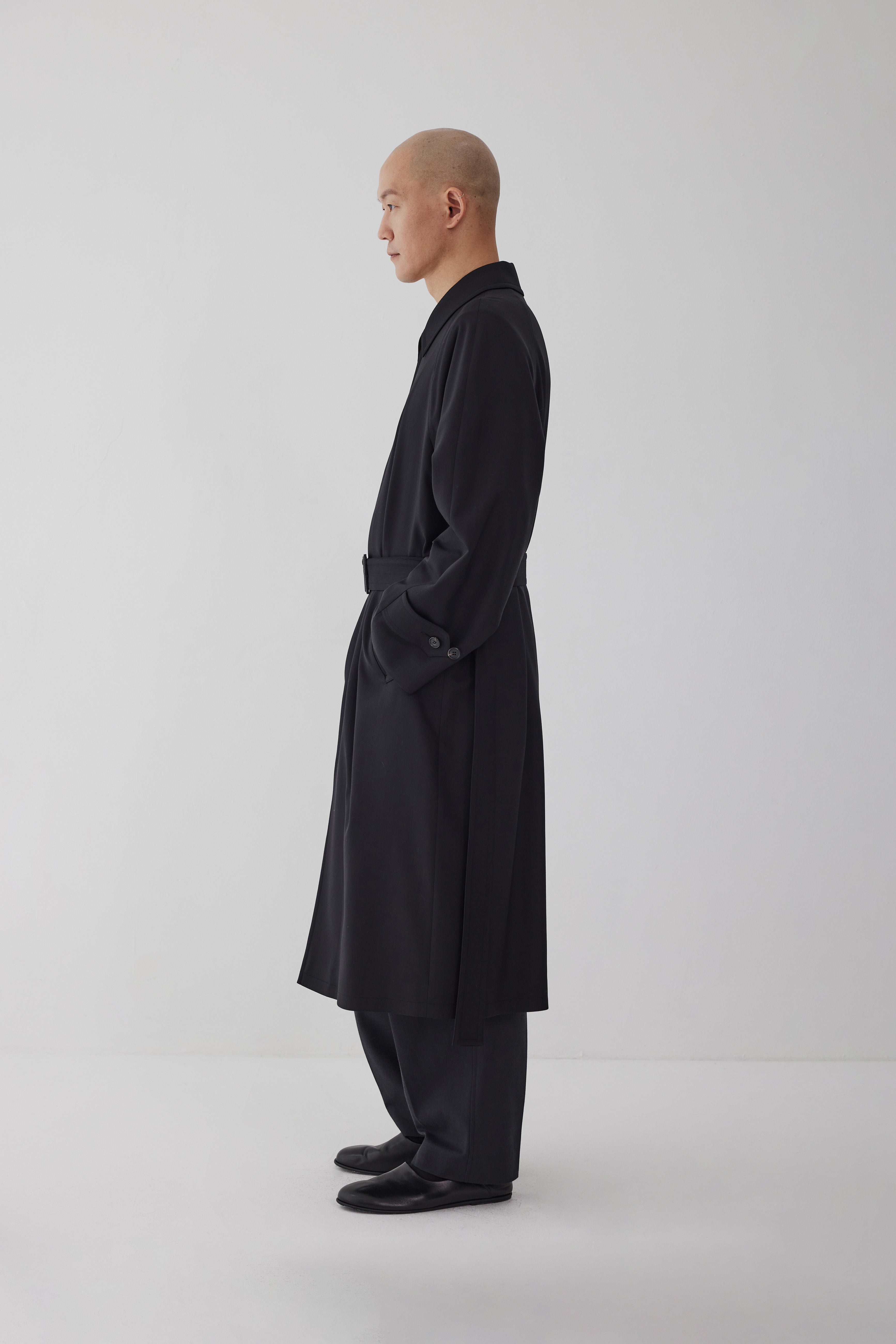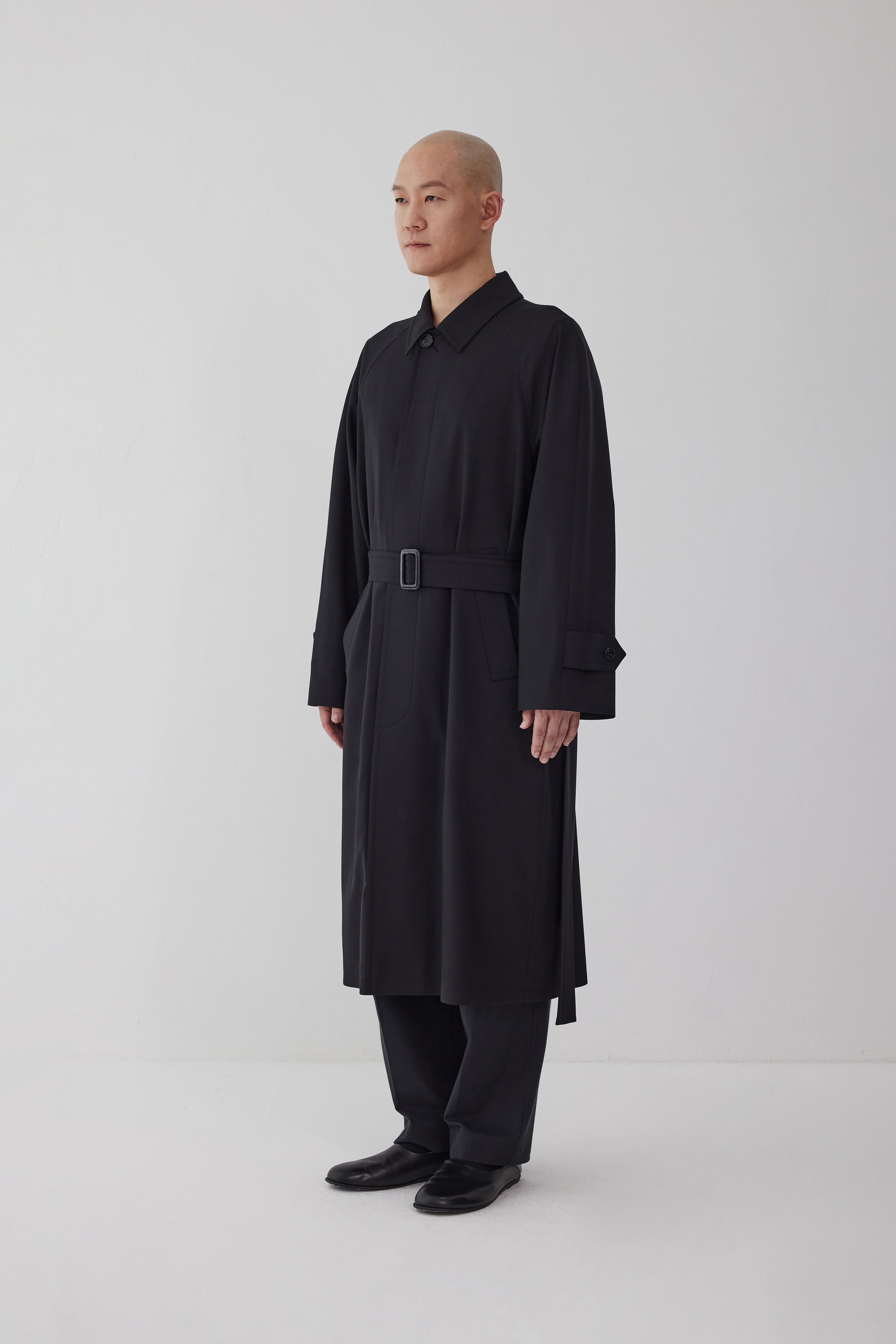 This is a signature trench coat that culminates LERICI's tailoring know-how, completing a refined silhouette with natural raglan sleeves. The fabric is made with a unique double weave, providing a soft touch and deep, beautiful colors. You can complete your style by matching it with various tops and bottoms of LERICI's 24FW season.