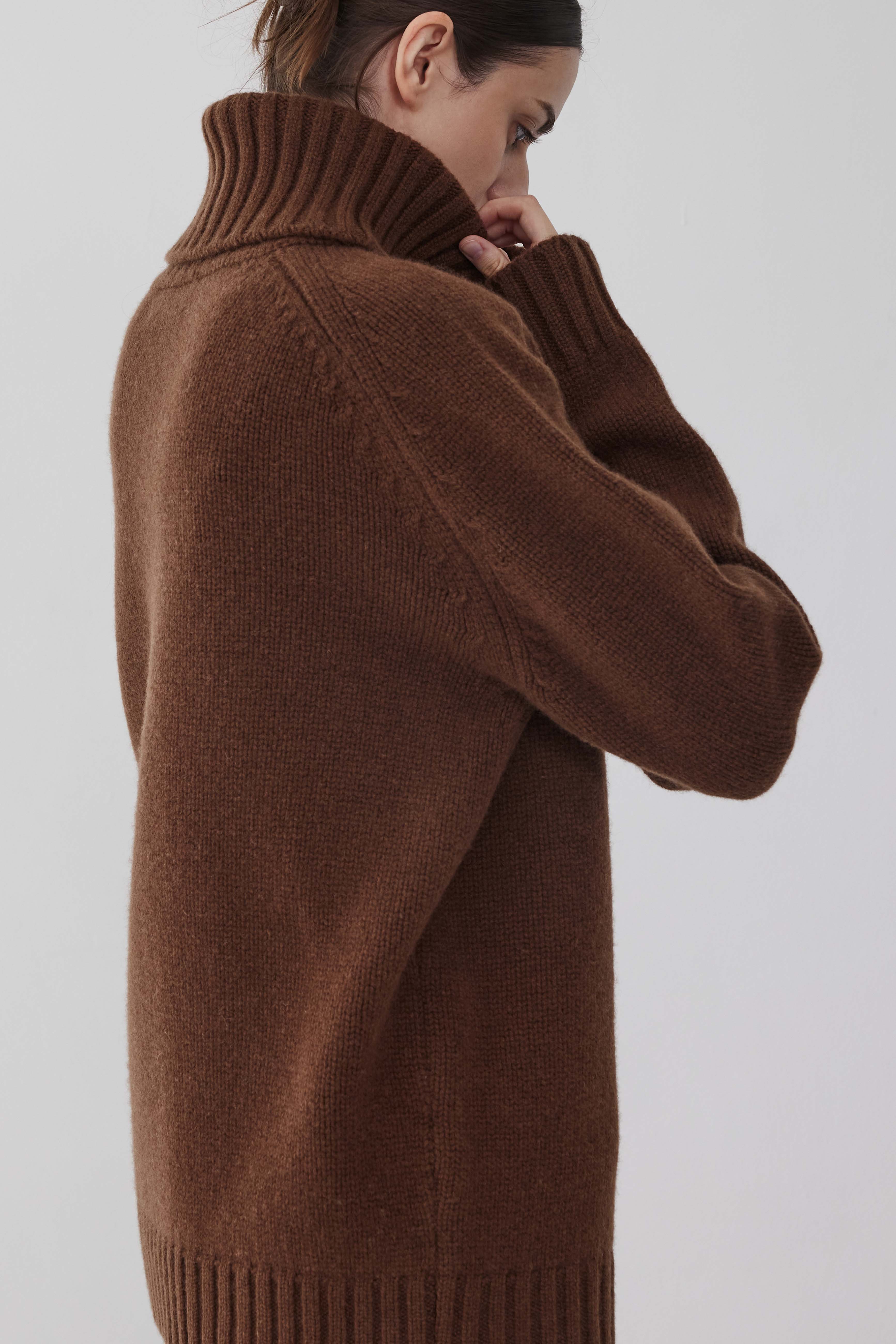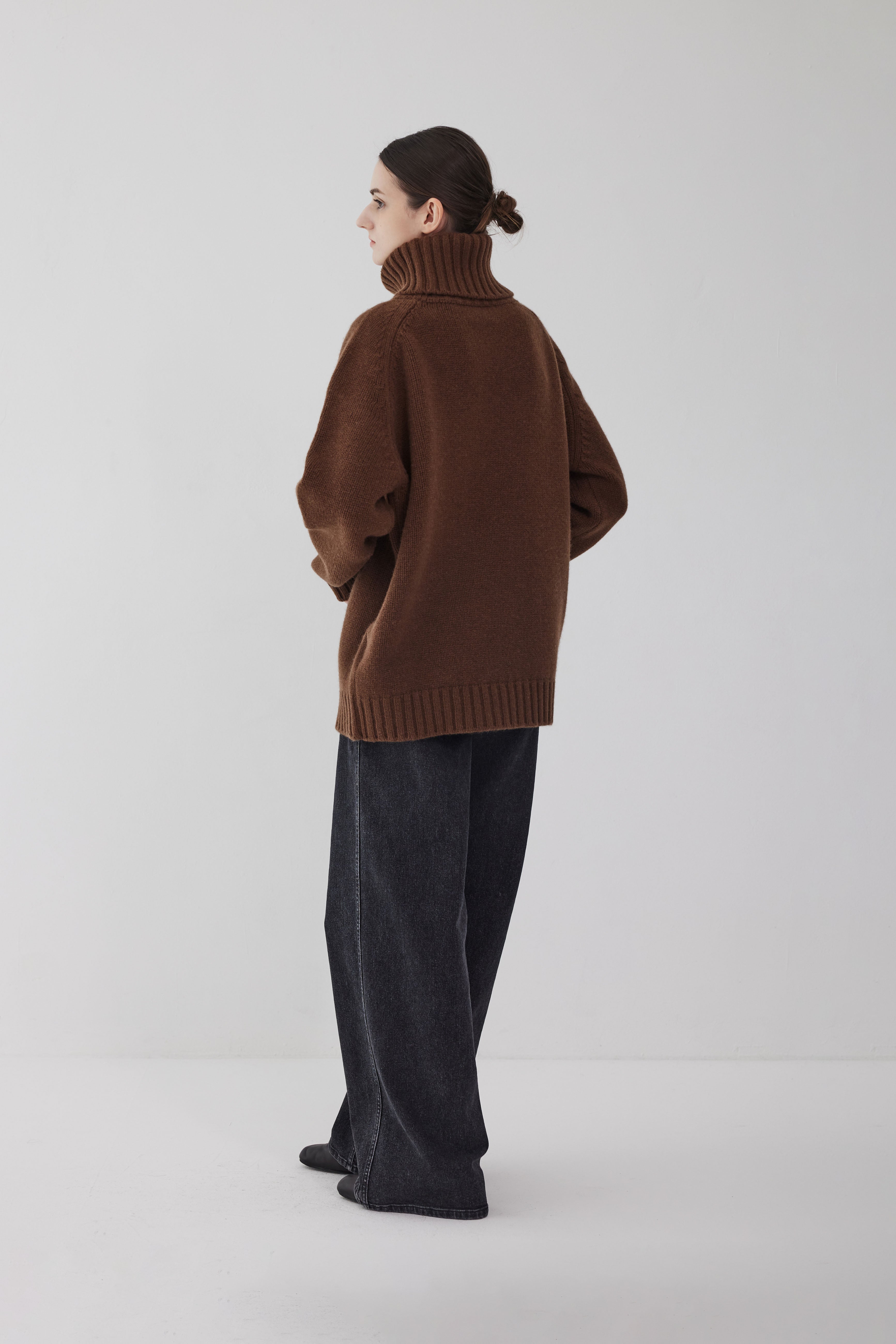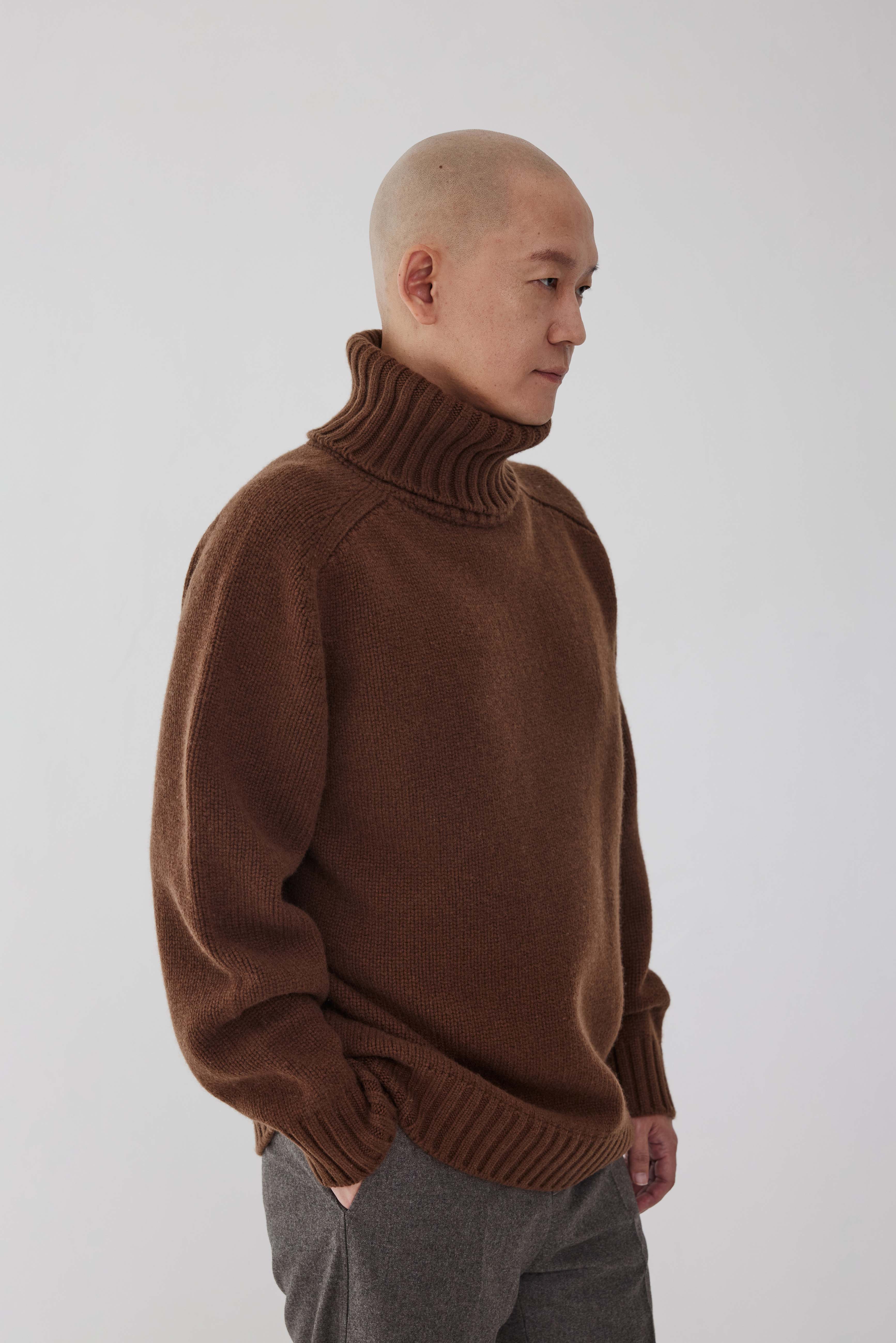 A high-neck sweater made of heavyweight wool cashmere. It features thick rib-trimmed cuffs and hem, and a roomy boxy fit to keep you warm and comfortable.