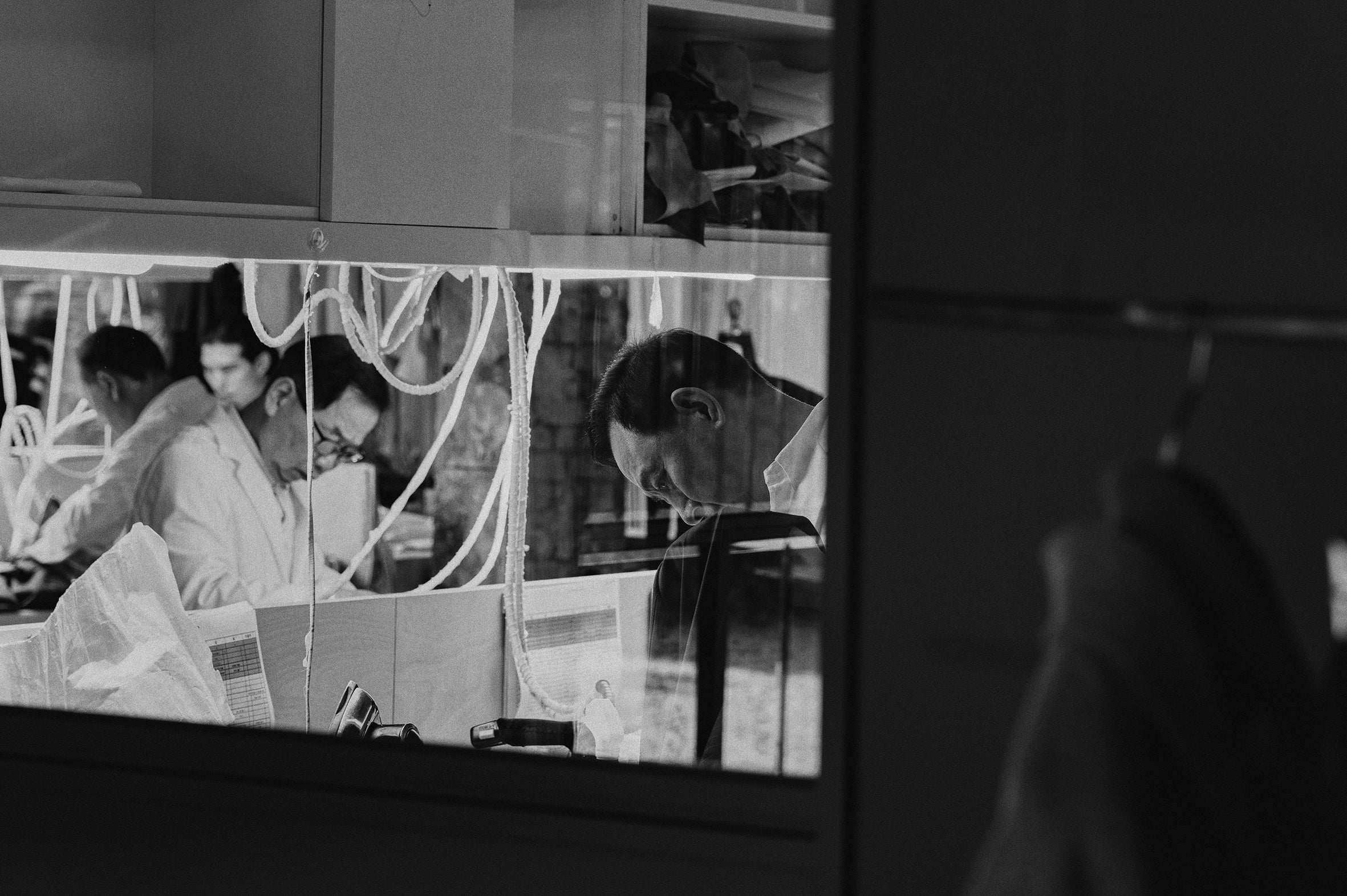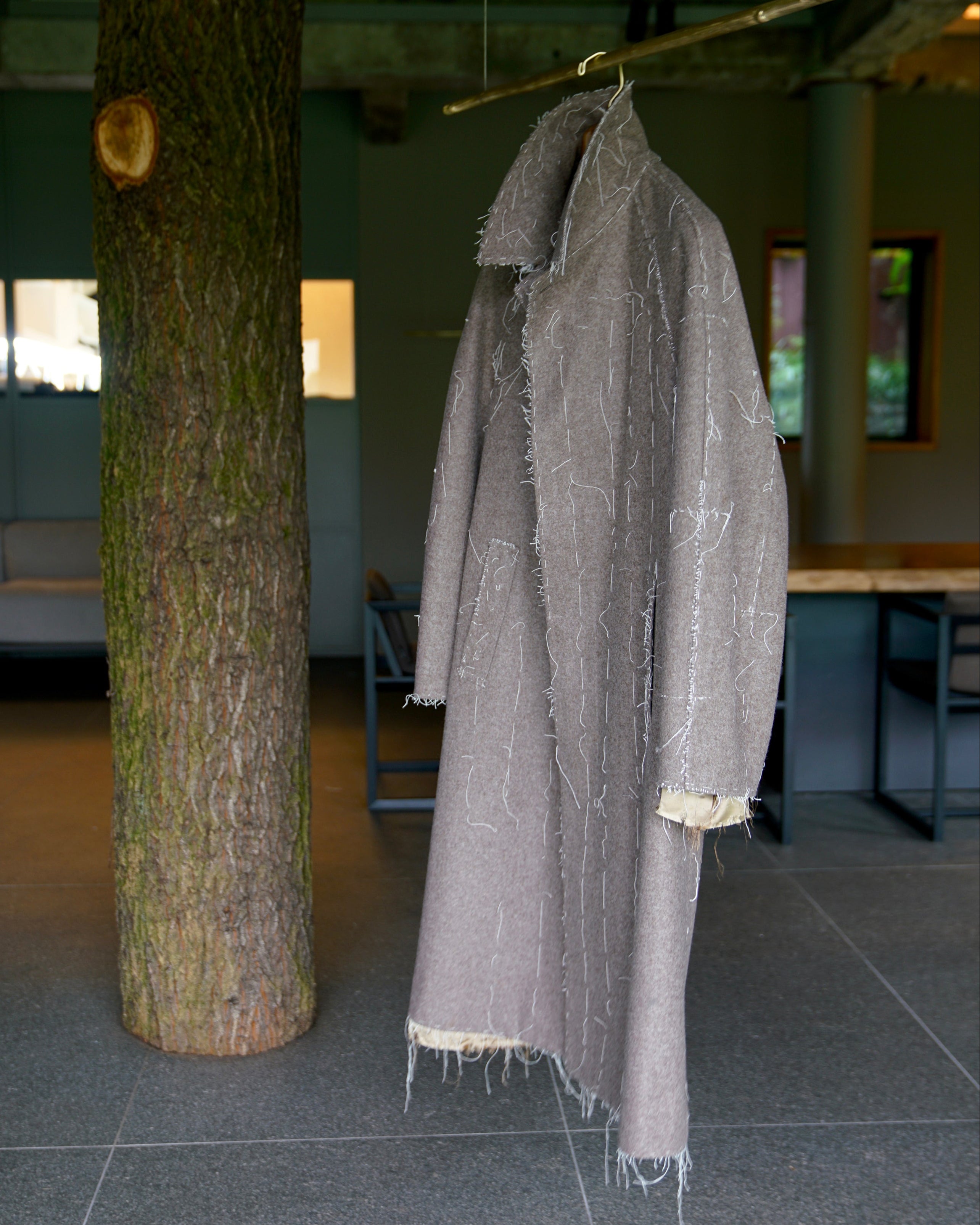 제작이 아닌 마감에만 40시간 이상을 사용하며 바느질의 흔적을 직조 안으로 숨기고, 원단이 접히며 생길 수 밖에 없는 두께 차이를 바늘로 지웁니다. 겉으로 드러나는 옷이 아니라 내부에서부터 견고하고 아름다운 미감이 분위기로 드러나는 옷을 특징으로 하고 있습니다. 오늘날 이렇게 까지 극한의 바느질을 담아낼 수 있는 공방은 영국, 이탈리아, 한국, 일본에 일부 있으며 손가락으로 가늠할 만큼 세계적으로 적은 수가 남아 있습니다.