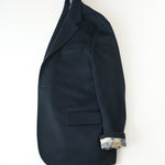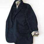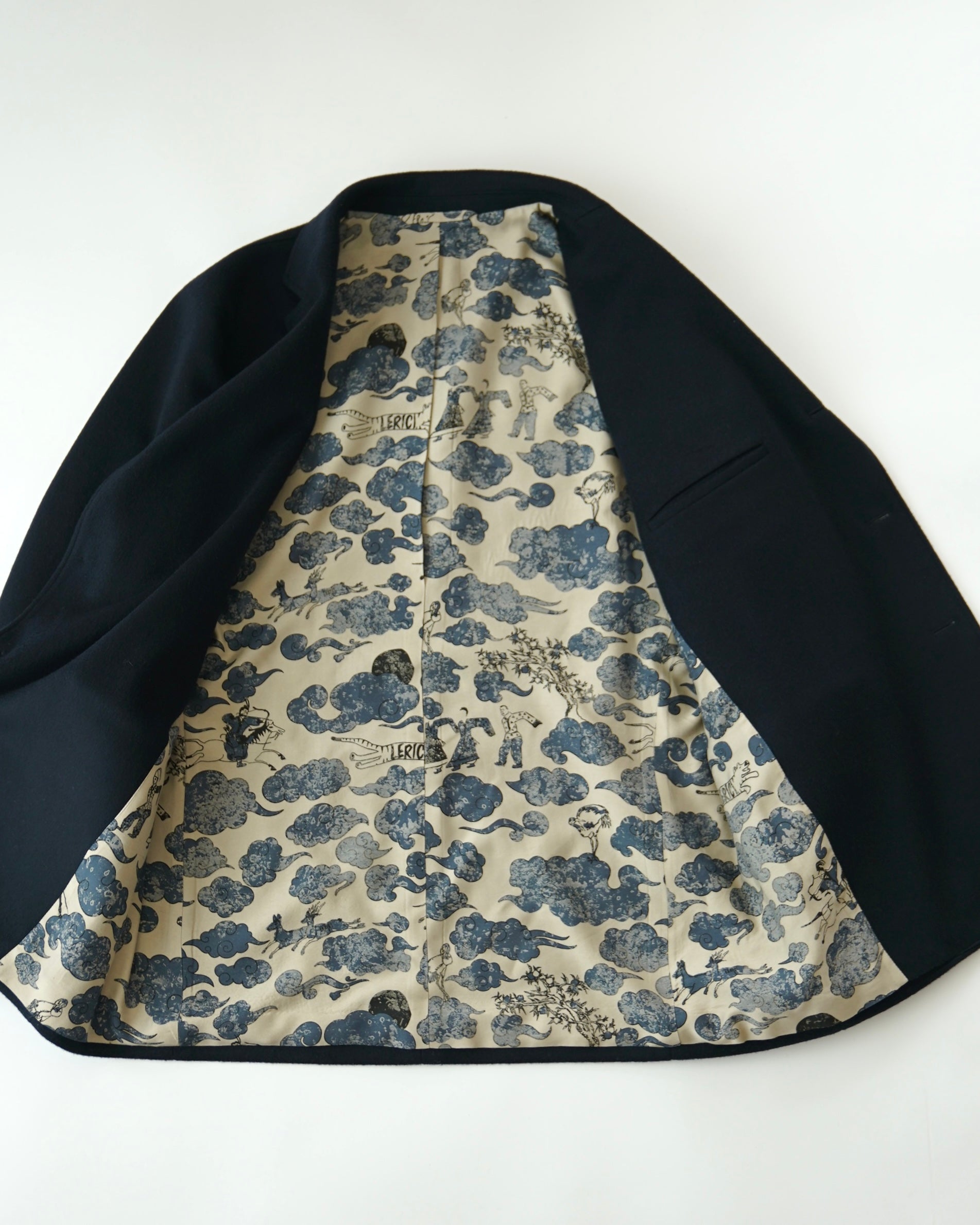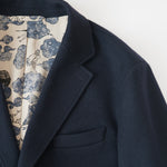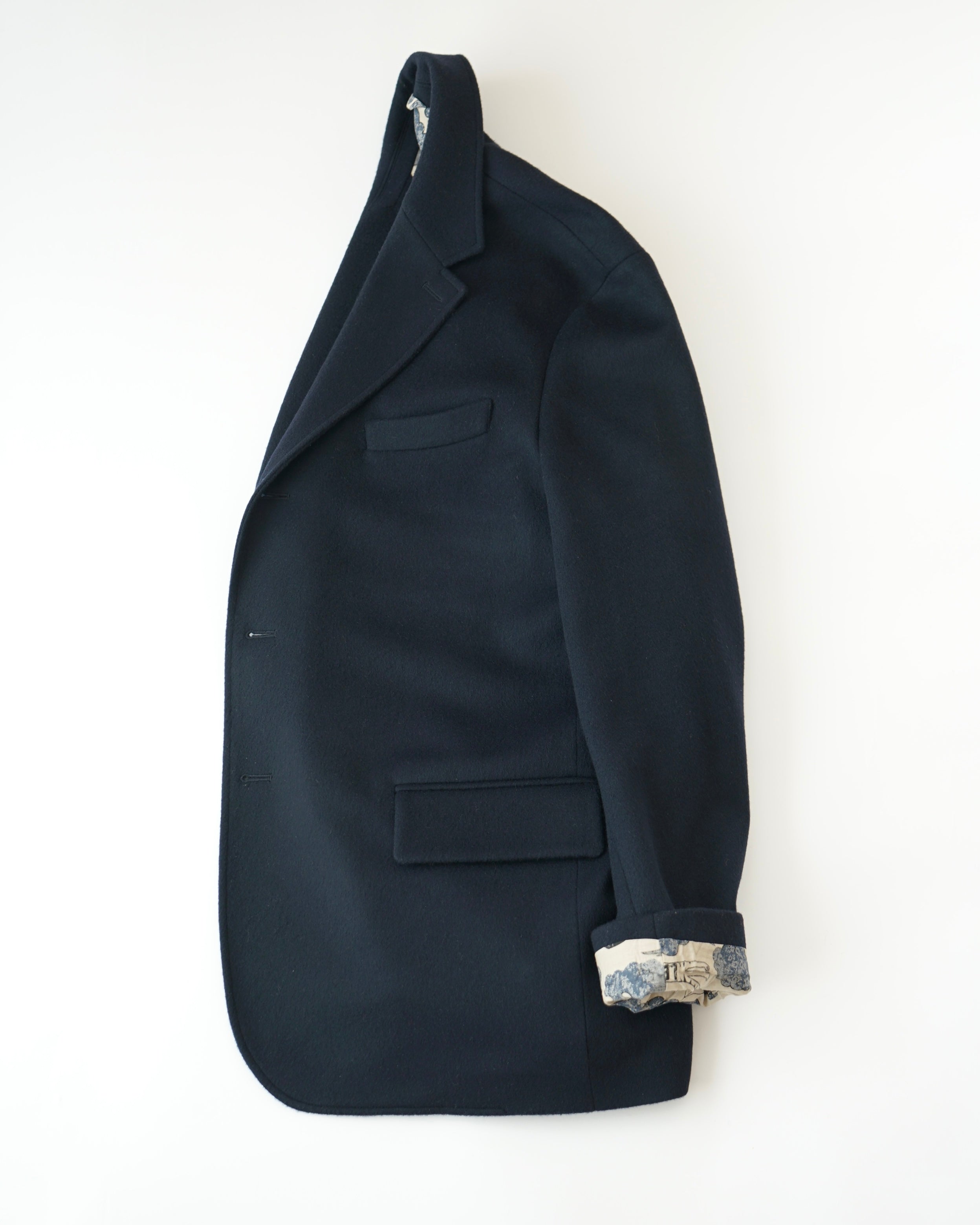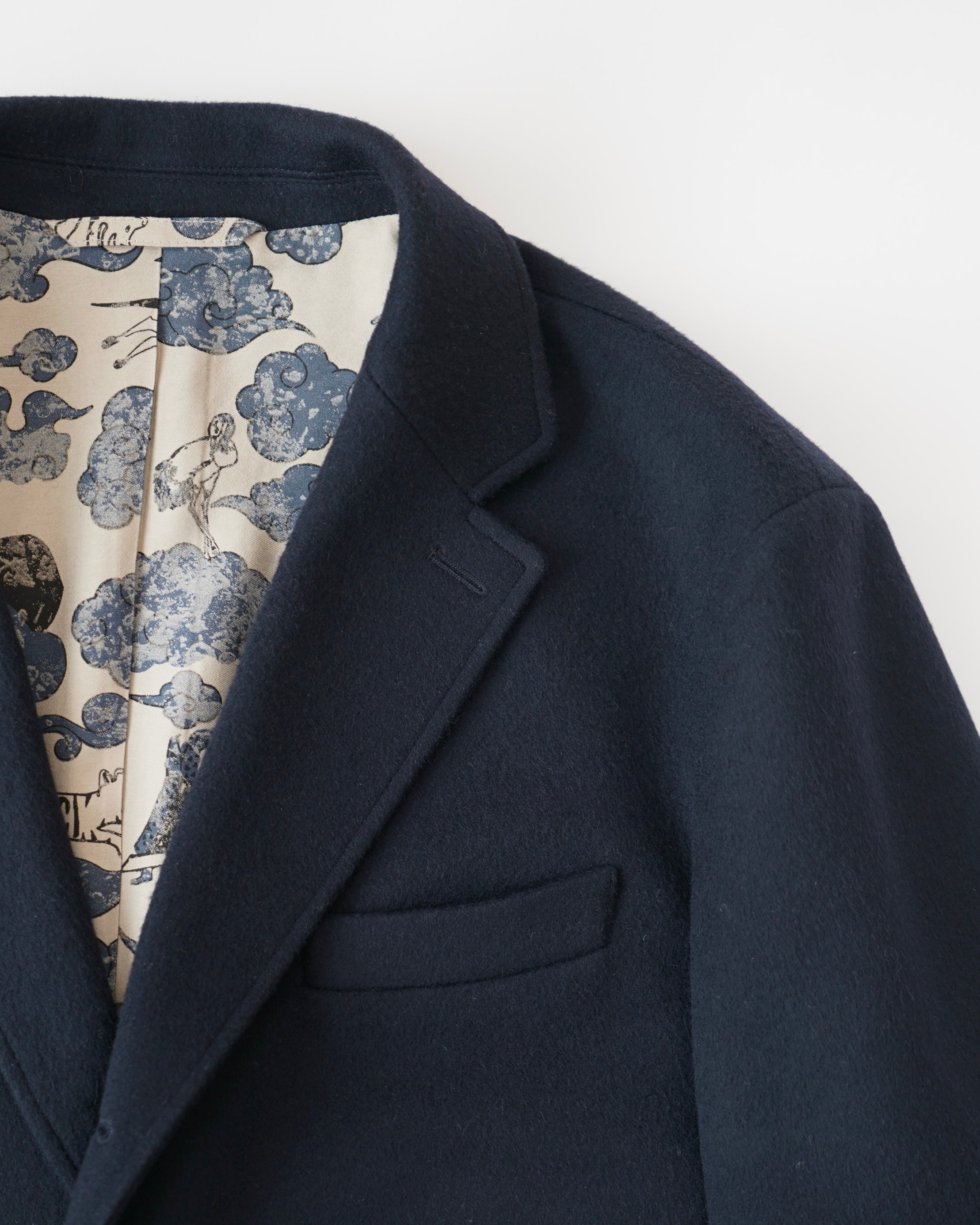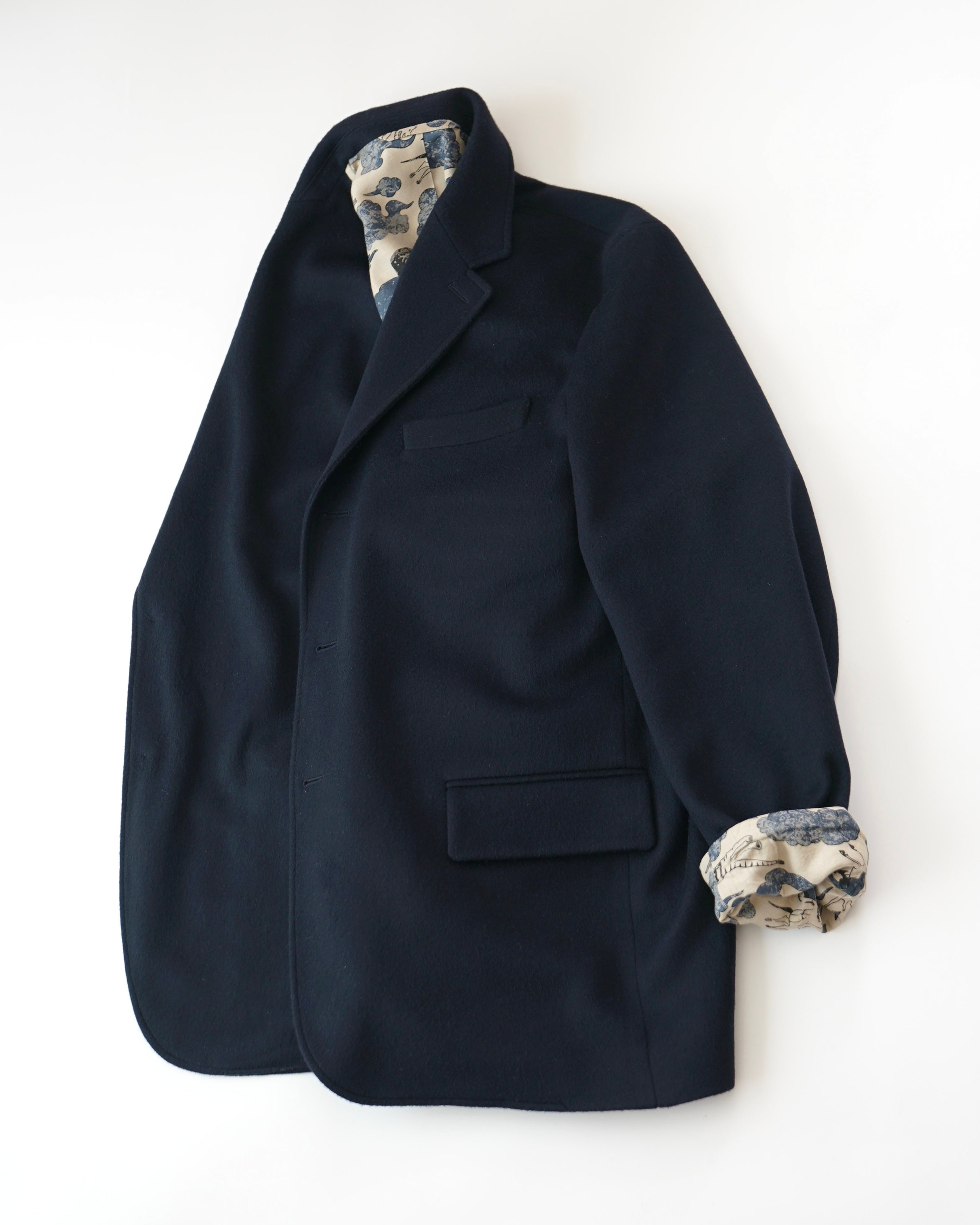 자켓의 특징은 패턴과 재료의 성질, 그리고 내부 구조가 만들어내는 완성도 높은 조화입니다. 앞면은 캔버스를 쓰지 않고 두 겹의 원단으로 구성해 자연스러운 드레이프를 만들었습니다. 부드러운 실루엣 속에서도 적당한 볼륨이 은근하게 살아나는 구조입니다.